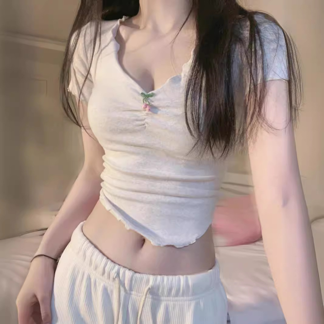 纯欲风性感辣妹短款上衣打底衫内搭设计感小众白色短袖t恤女夏季