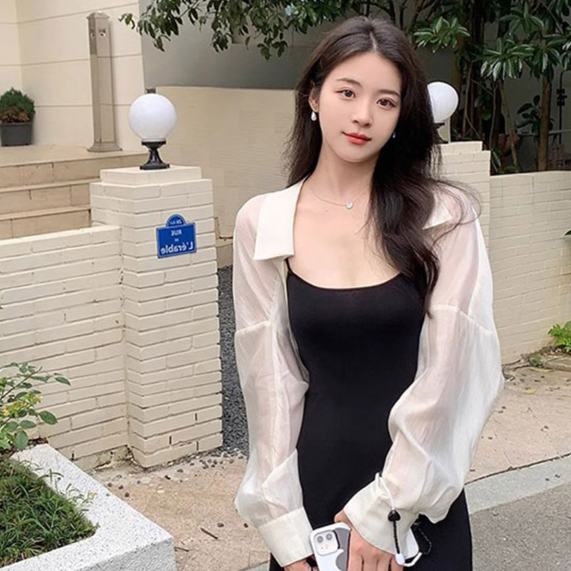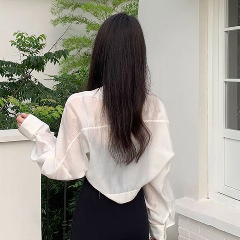 跨境薄款防晒衬衫女小披肩夏季外搭小个子开衫微透外套短款上衣潮
