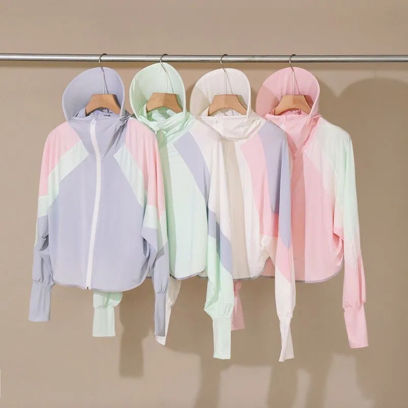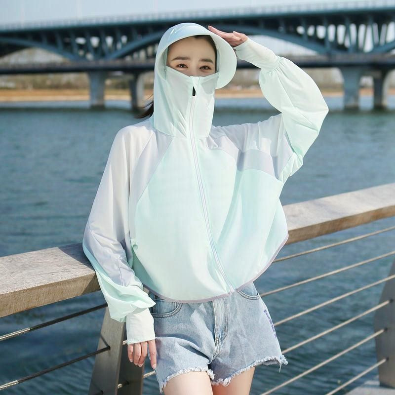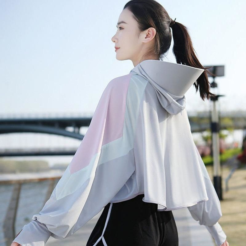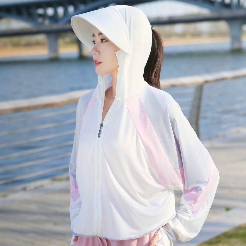 设计感新款宽松冰丝凉感开衫插色薄款防晒衣女夏季upf50+连帽上衣