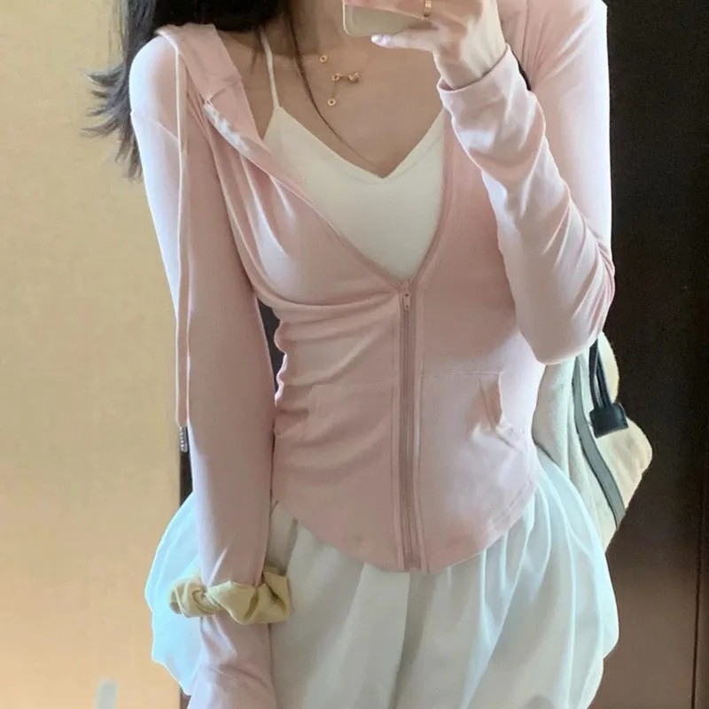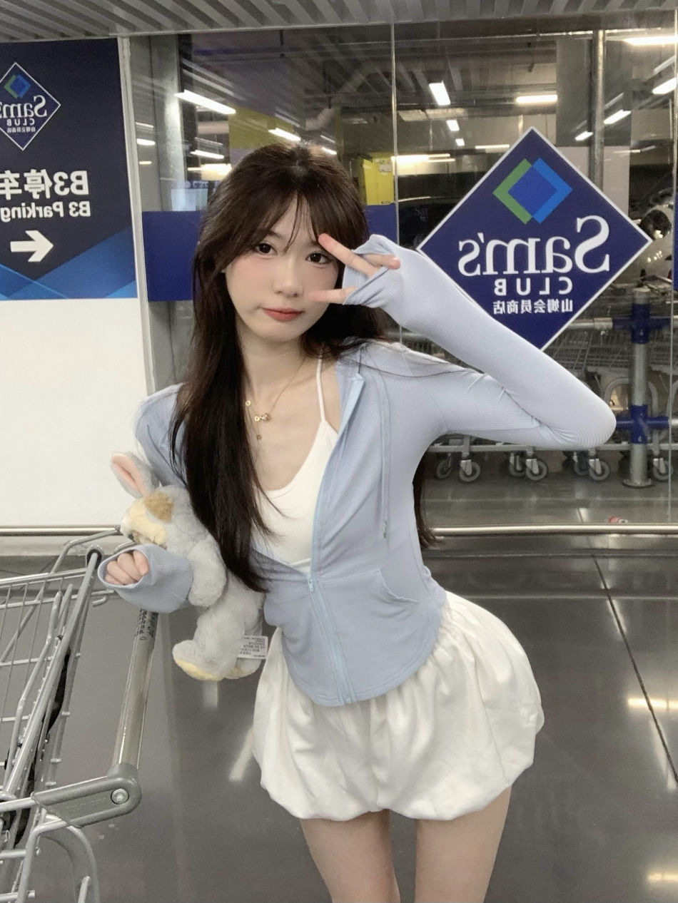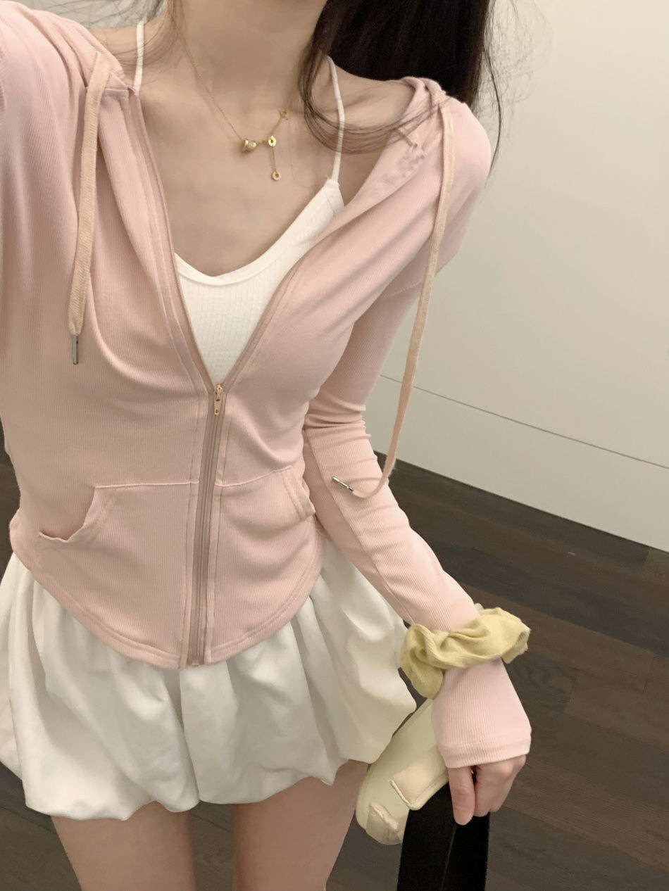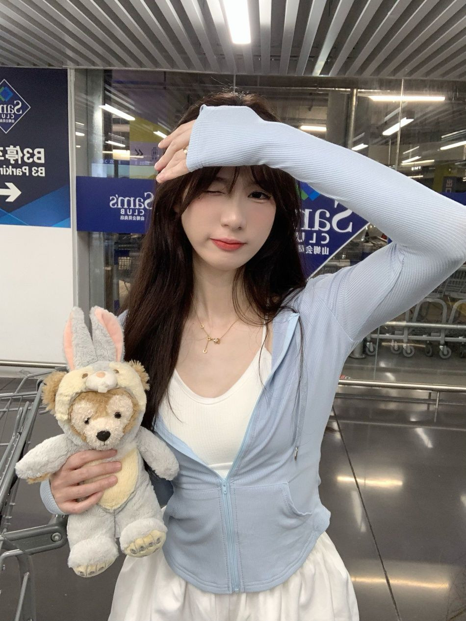 跨境连帽套装薄款防晒衣女装夏季辣妹气质修身显瘦长袖短外套上衣