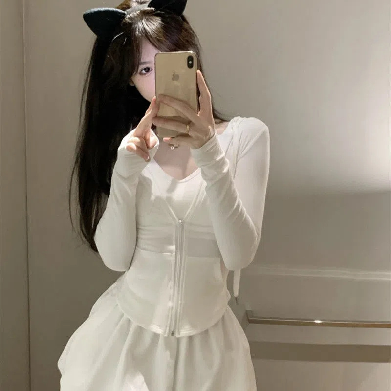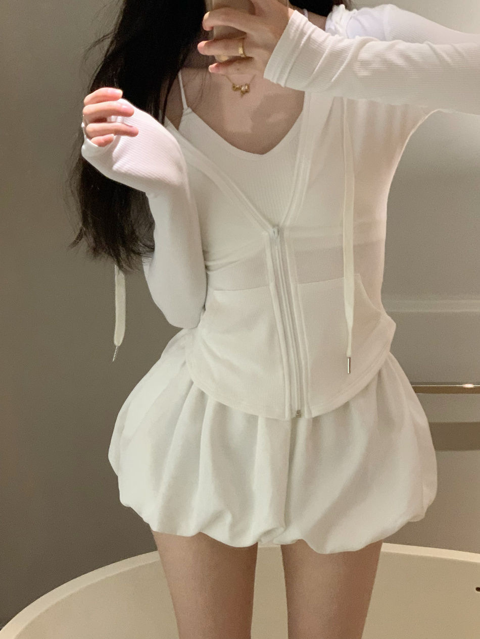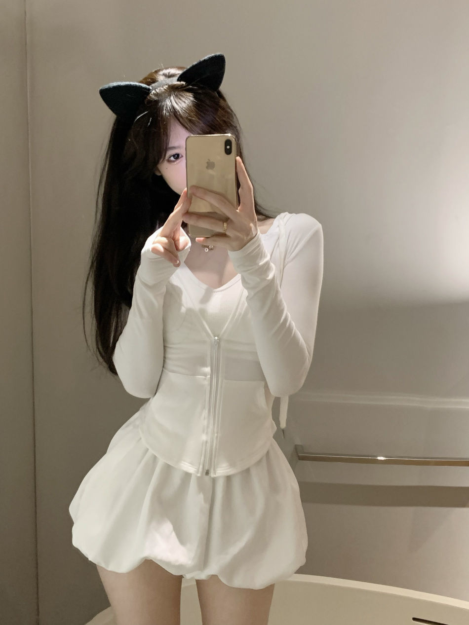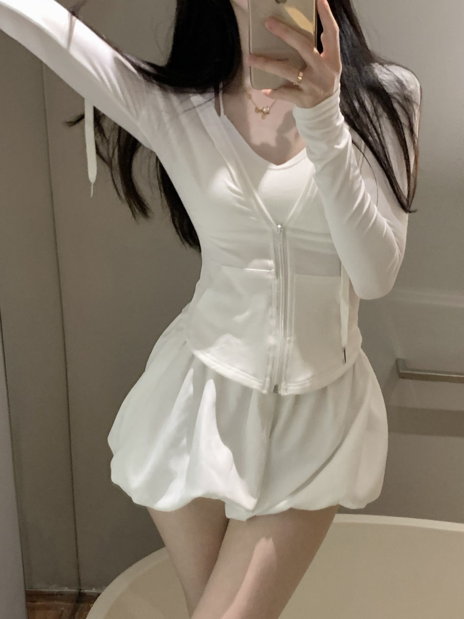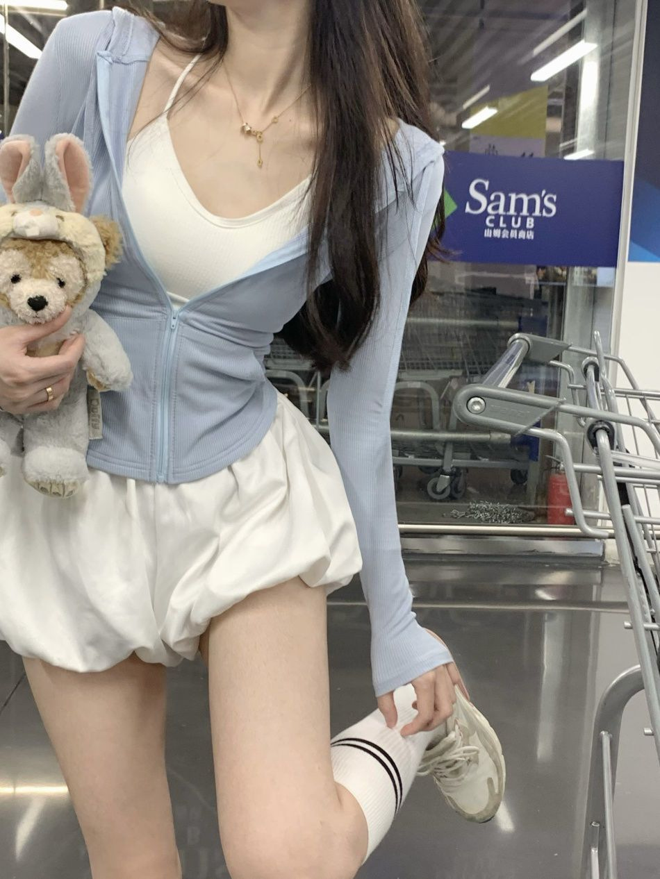 跨境连帽套装薄款防晒衣女装夏季辣妹气质修身显瘦长袖短外套上衣