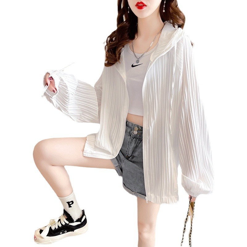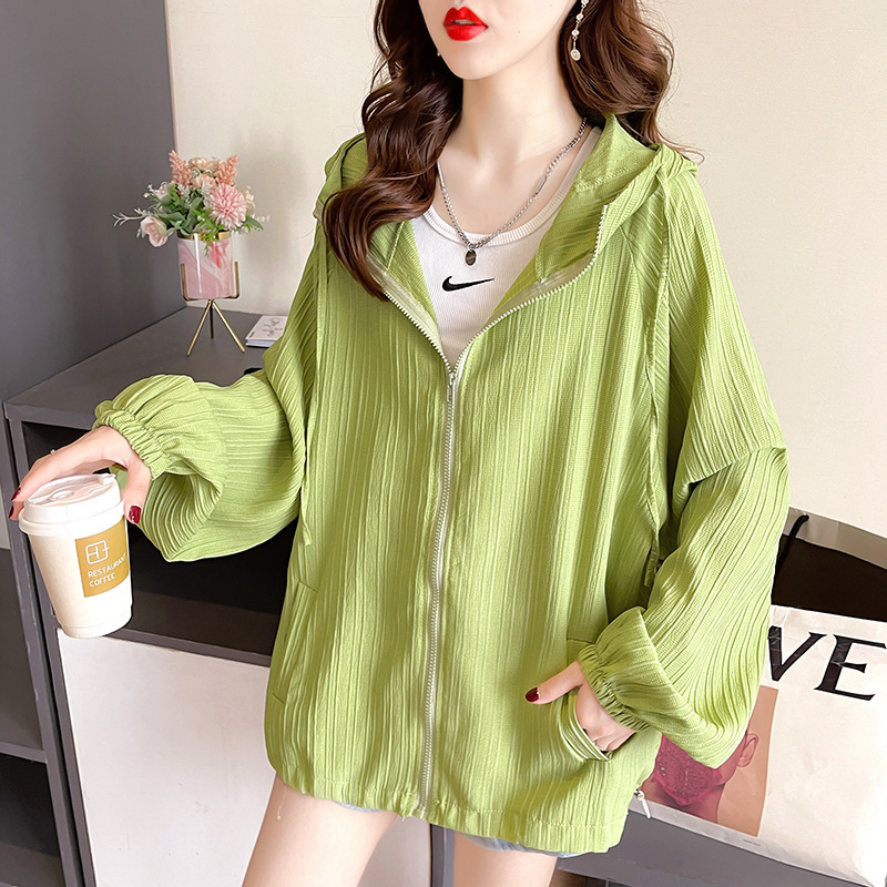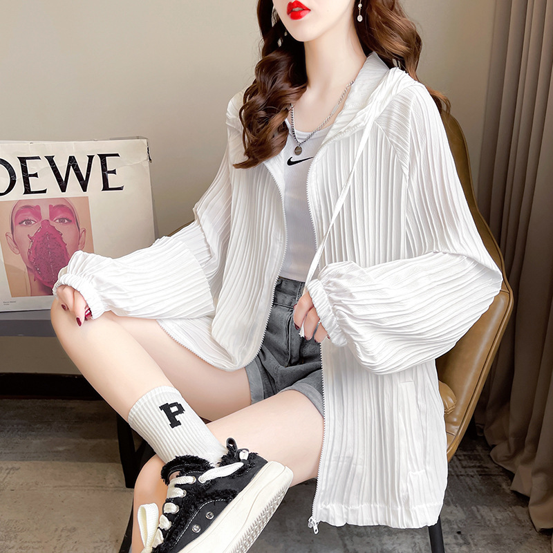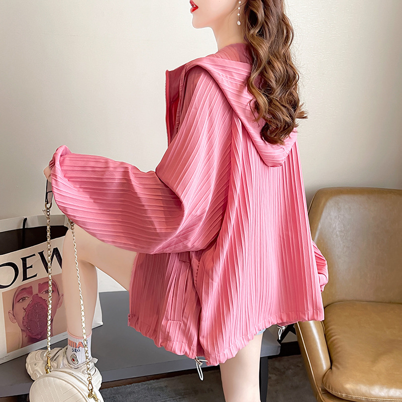 跨境时尚海浪条防晒衣女夏连帽薄款长袖开衫外套上衣大码女装