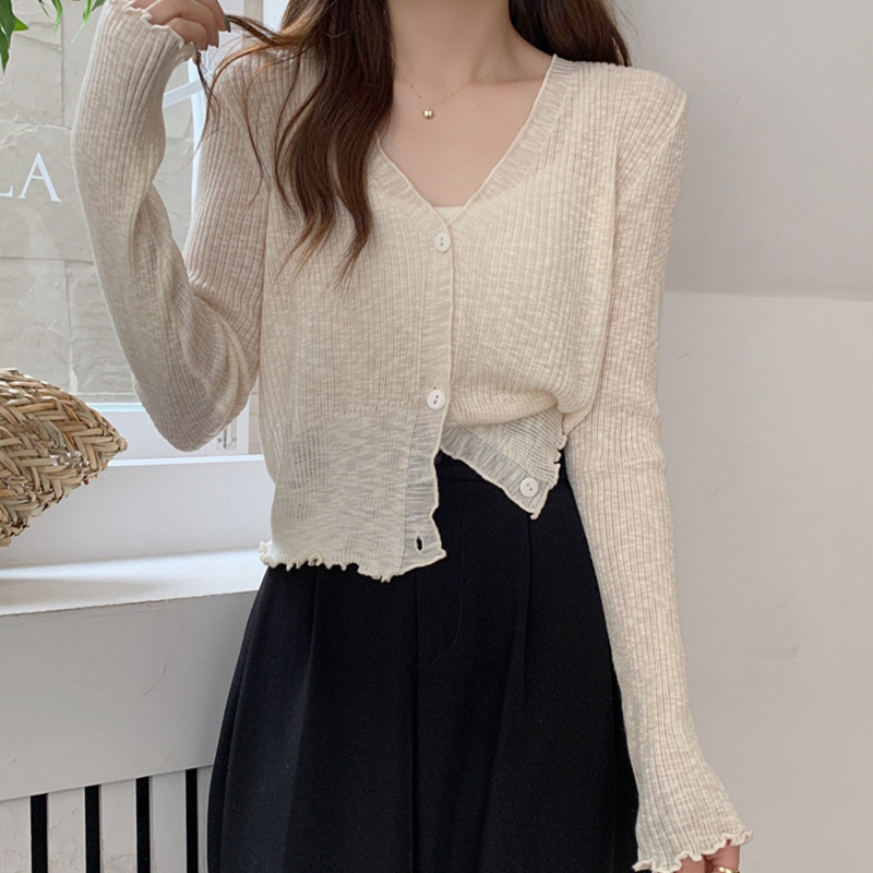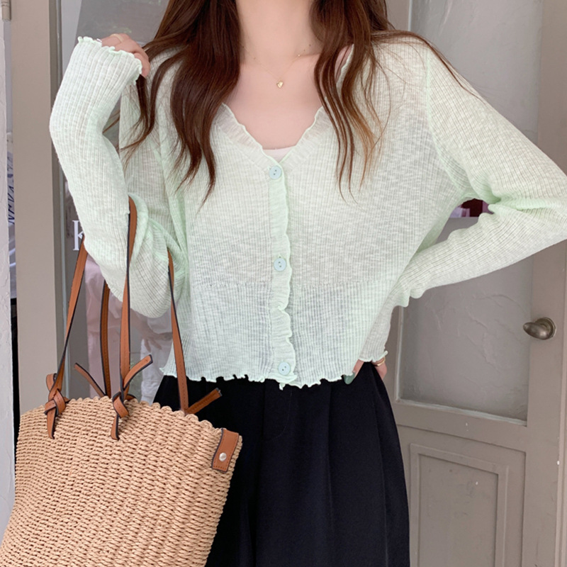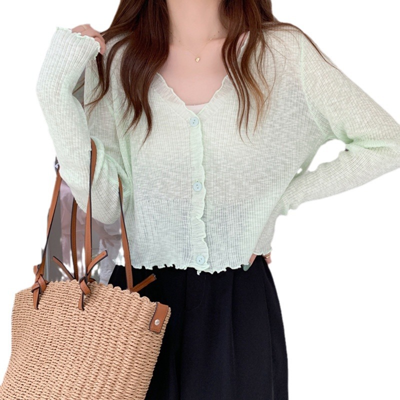 冰丝防晒衣女夏季薄款外搭针织开衫小披肩网纱罩衫短款外套潮