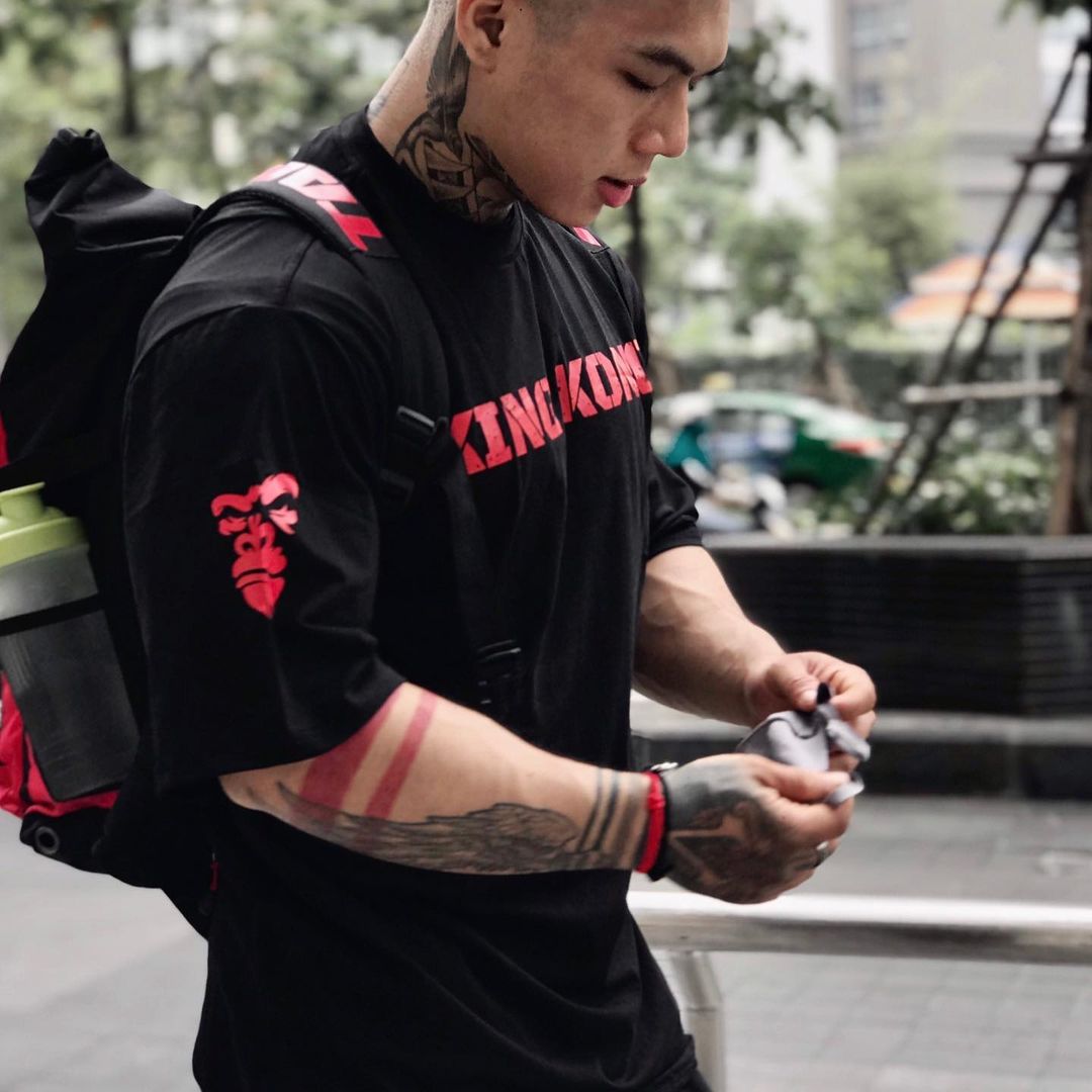 奥赛宽松潮牌男运动短袖T恤男夏季纯棉半分袖健身房跑步训练衣服