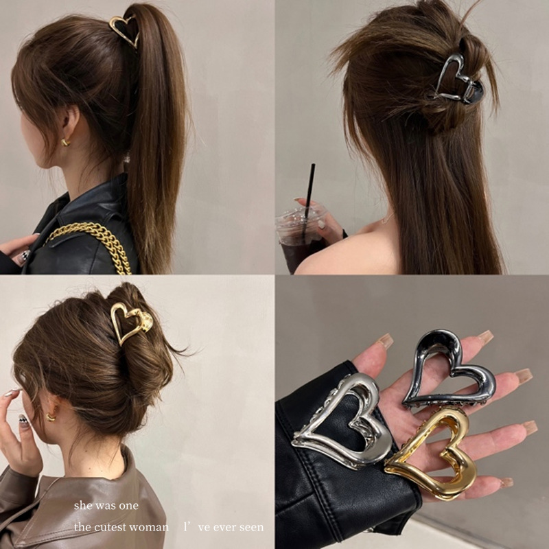 镂空金属爱心抓夹ins网红盘发鲨鱼夹高级感新款发夹女后脑勺