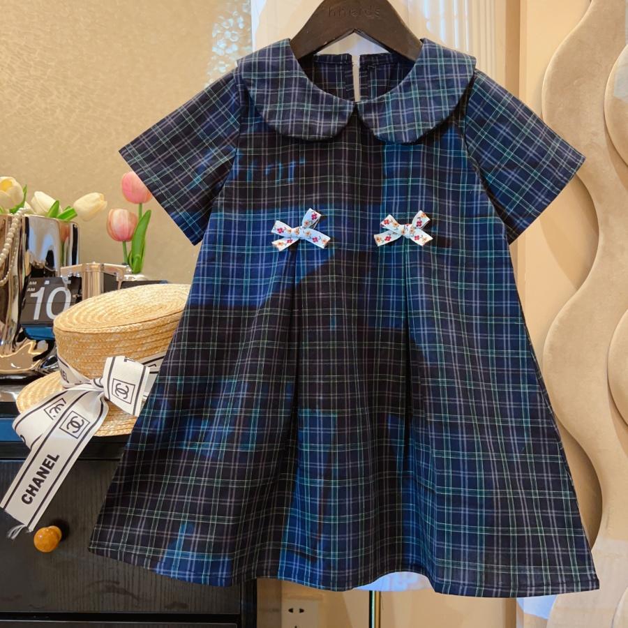 韩版格子连衣裙2025新款洋气儿童娃娃领蝴蝶结洋气女童公主裙