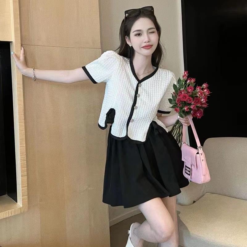 夏季小个子短裙套装女小香风名媛短款上衣半身裙裤裙两件套裙
