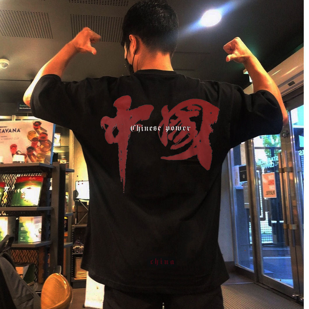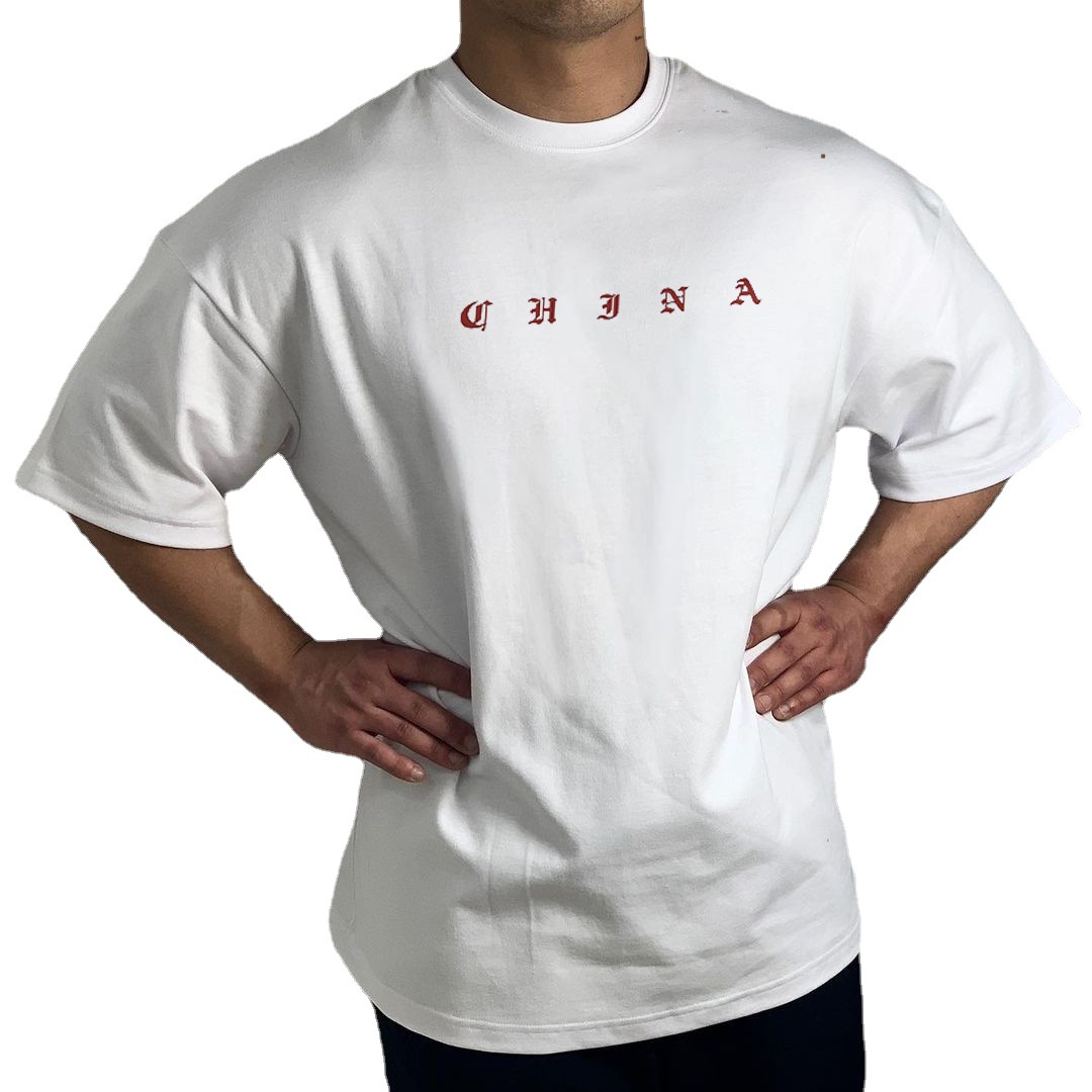 中国潮牌宽松大码肌肉短袖男夏季男士运动休闲运动健身圆领棉上衣
