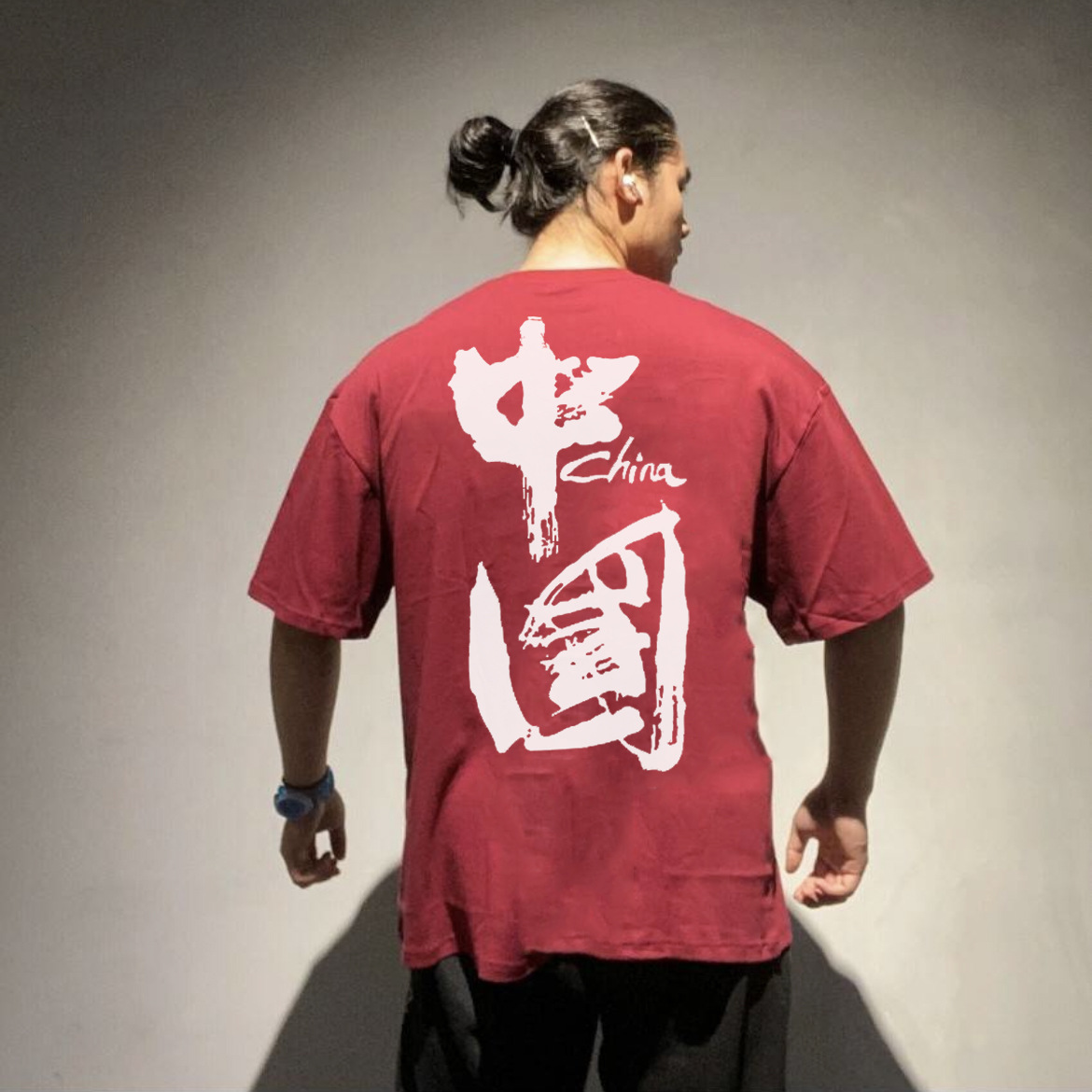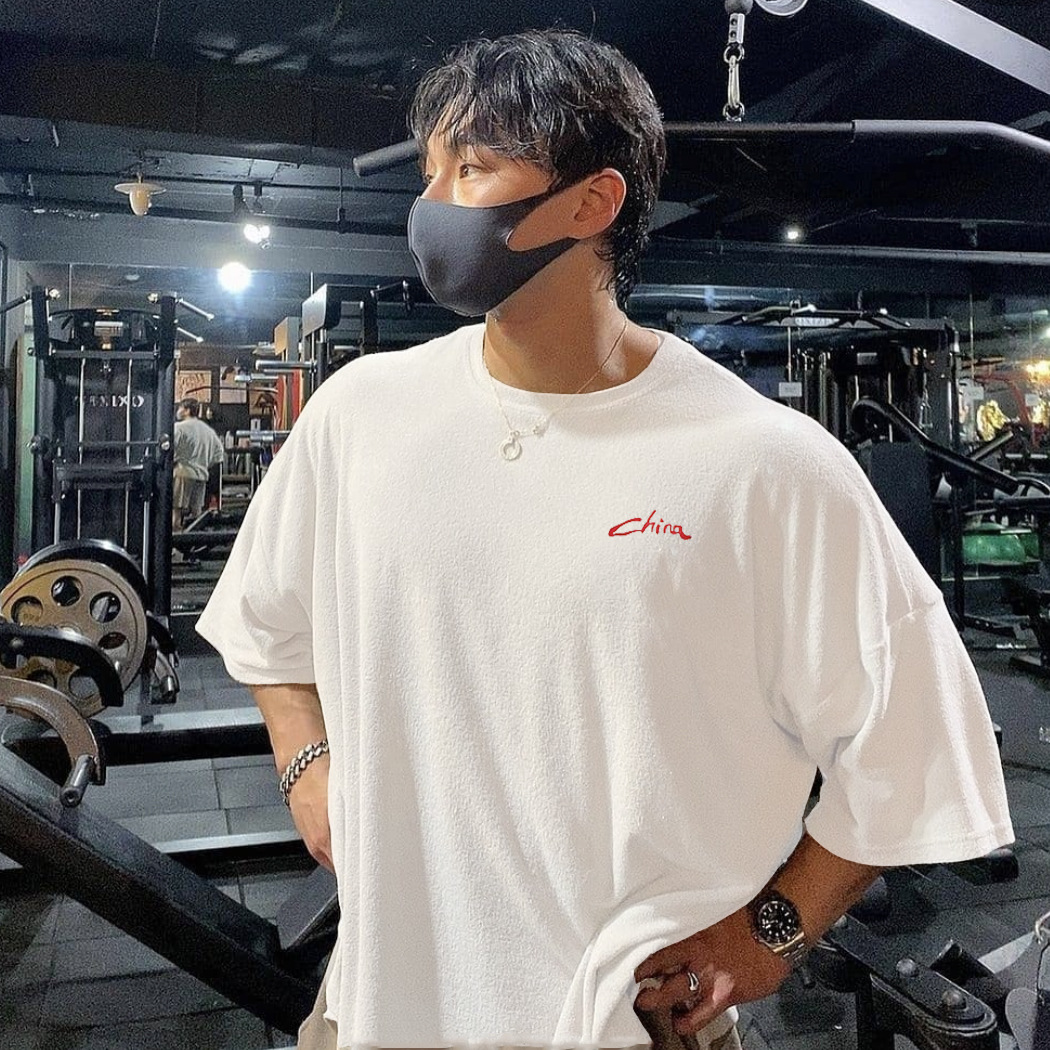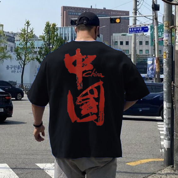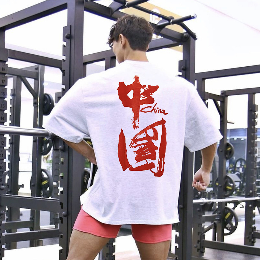 潮牌中国自制印花半袖运动T恤男健身短袖夏季跑步宽松大码训练衣