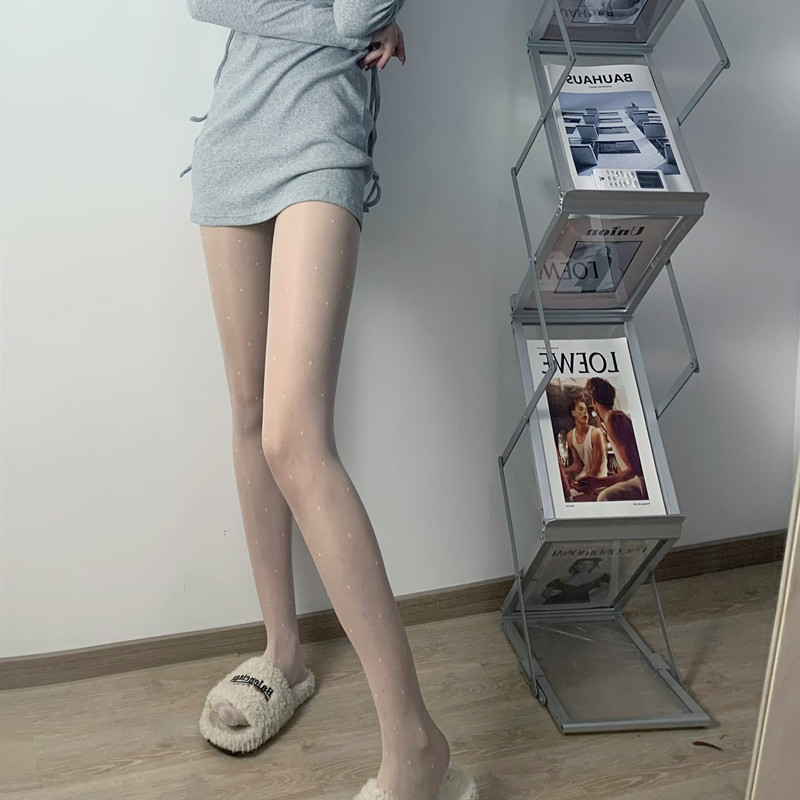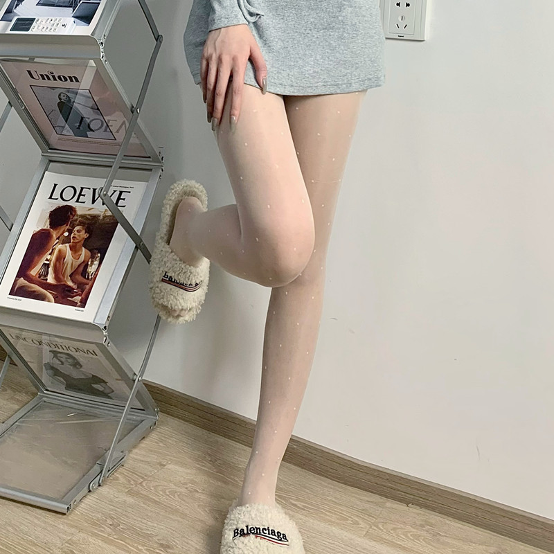 夏纯欲风黑丝幂式波点提花丝袜小圆点超薄奶白色连裤袜性感显瘦女