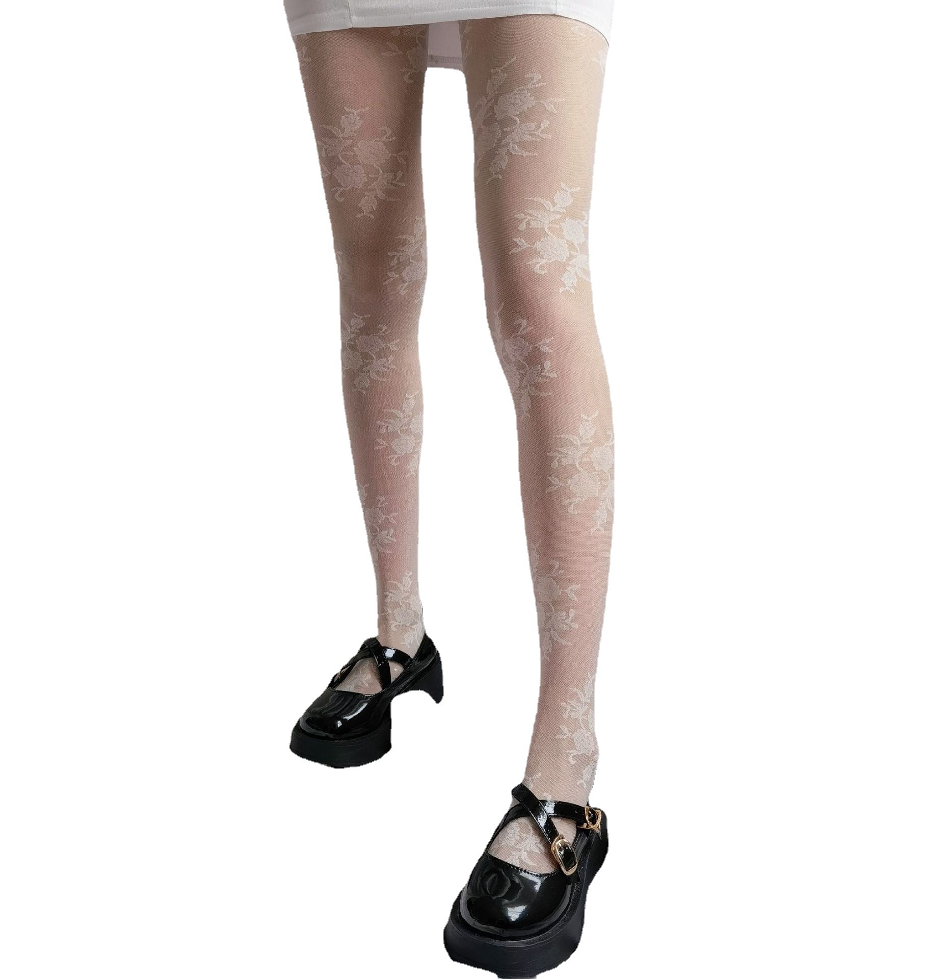 复古蕾丝玫瑰花朵刺绣薄款暗纹女夏季甜美宫廷lolita白丝袜连裤袜