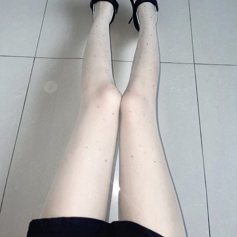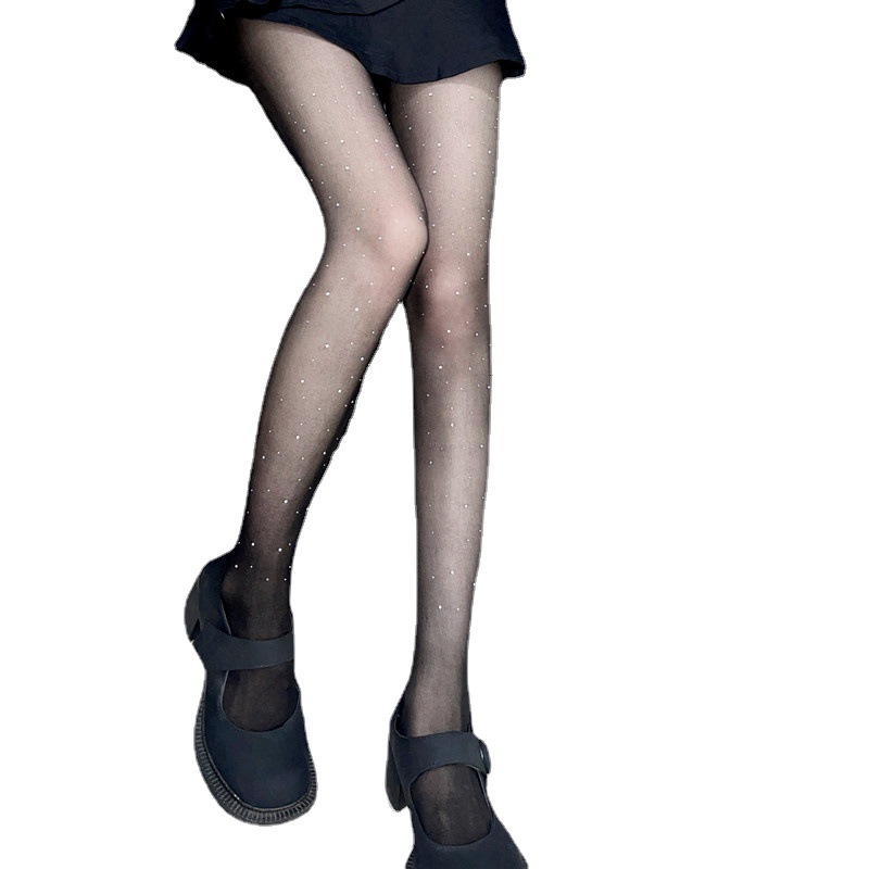 黑丝闪钻blingbling丝袜带钻性感辣妹薄款白袜防勾丝闪亮黑丝袜女