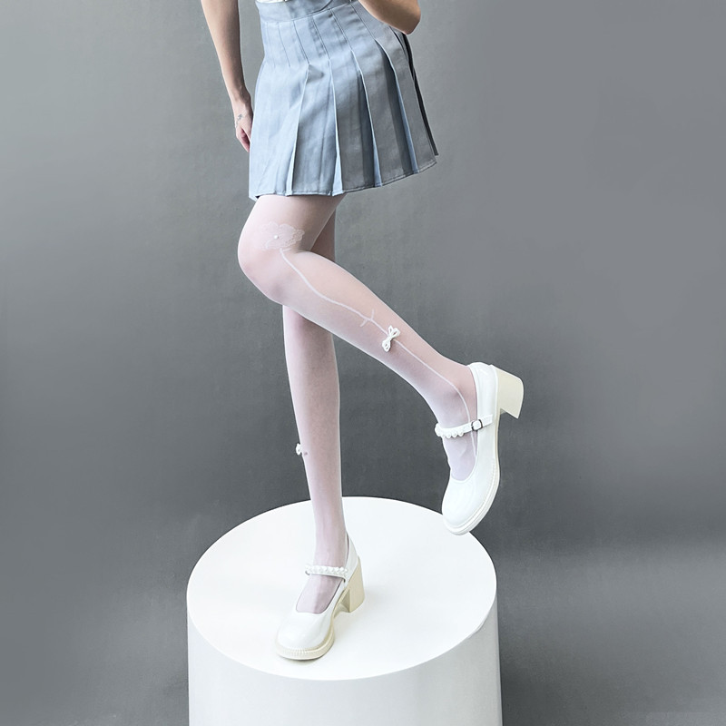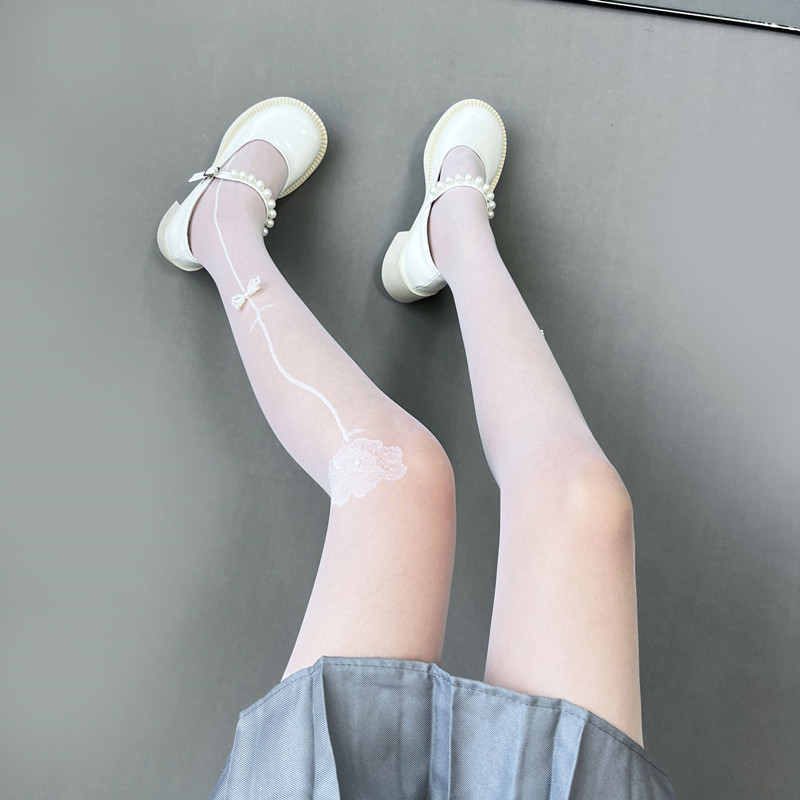 日系纯欲风白色侧面提花一支玫瑰丝袜洛丽塔订珍珠蝴蝶结连裤袜女