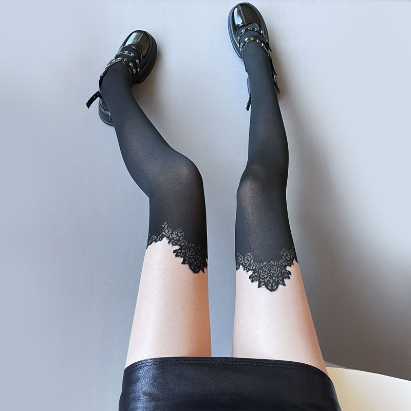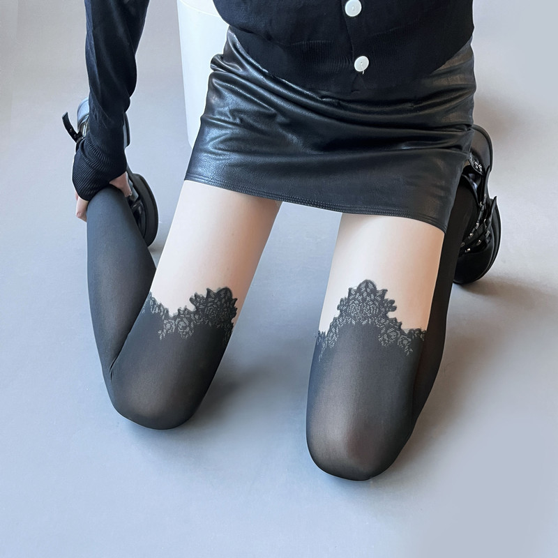 网红假高筒拼接丝袜纯欲辣妹小心机黑丝性感显瘦假长筒连裤袜女