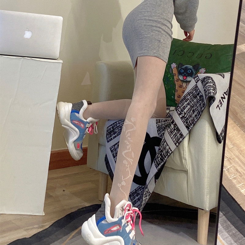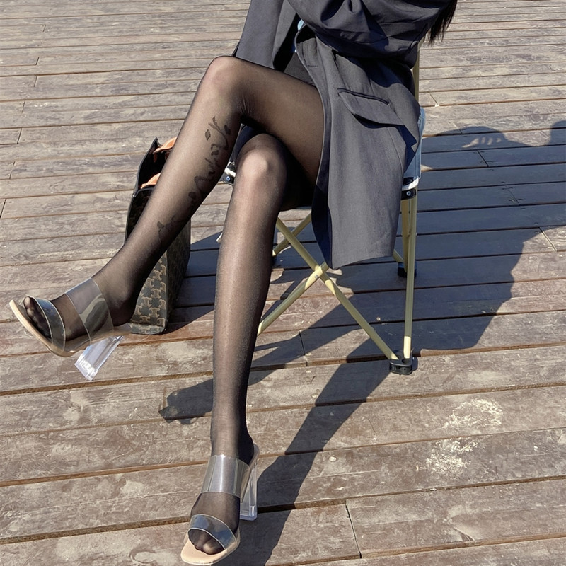 春夏日系性感薄款黑丝小腿刺绣提花连裤袜女白色可甜可闲打底丝袜