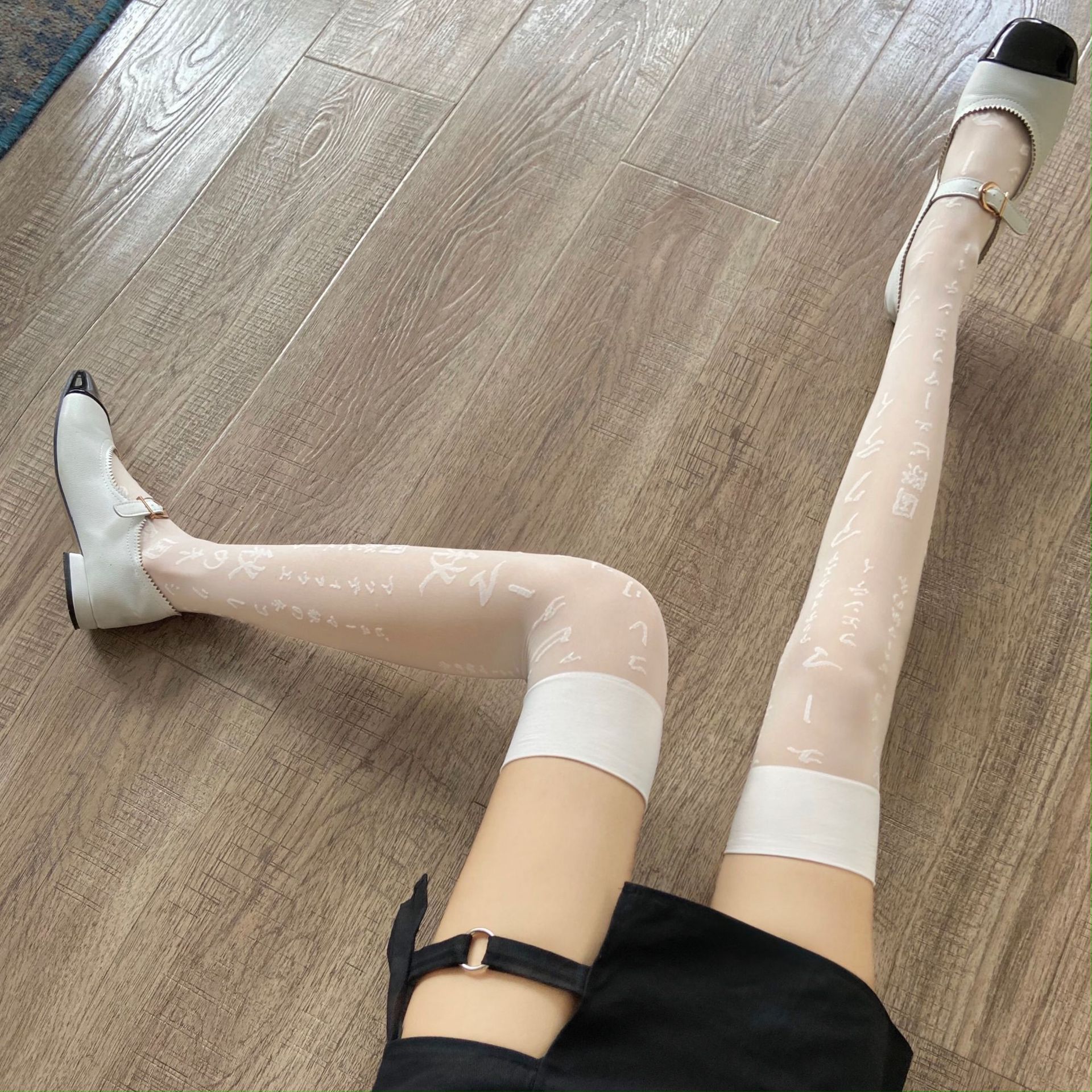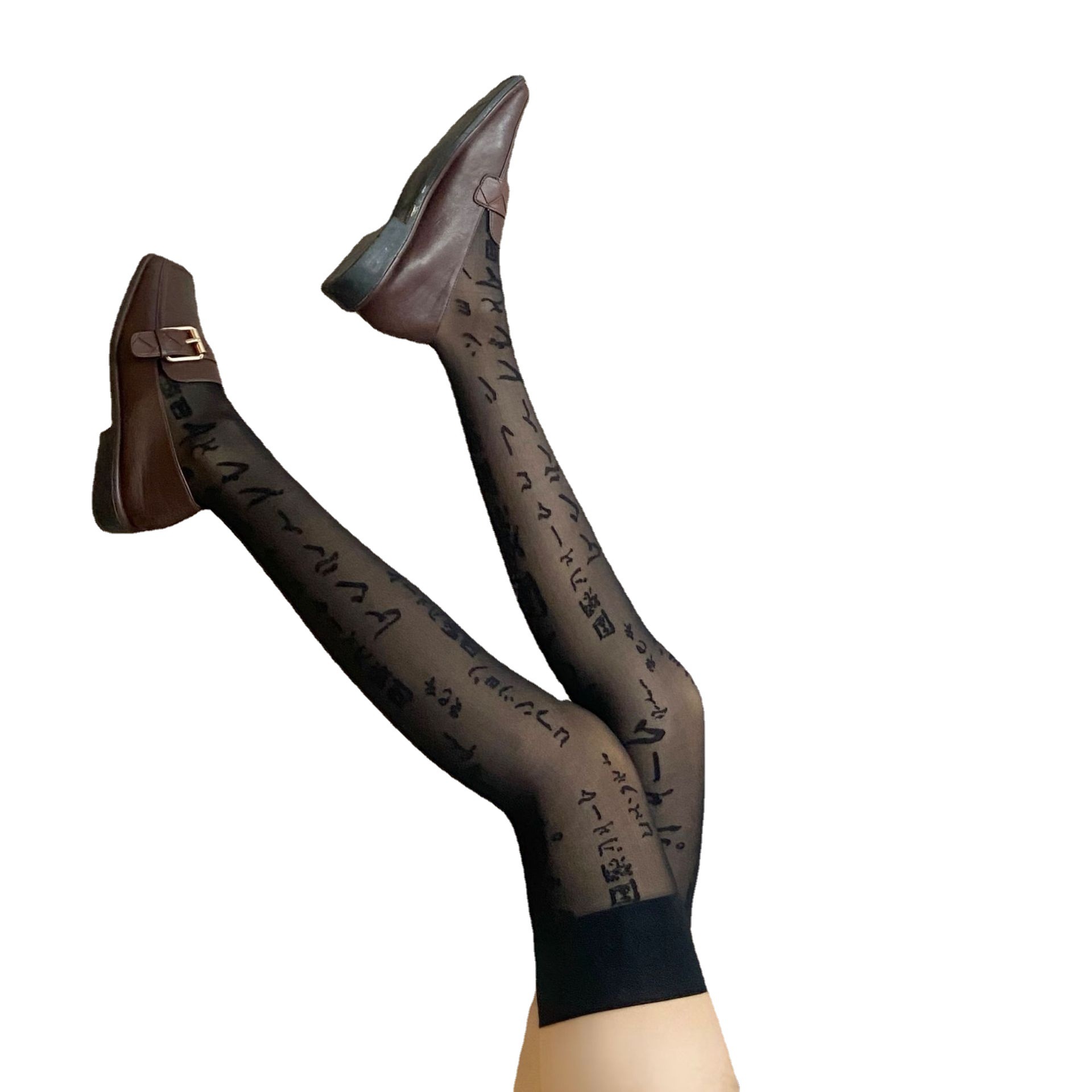 日系暗黑夏薄款黑色性感日文丝袜长筒jk字母白色过膝ins潮袜子女