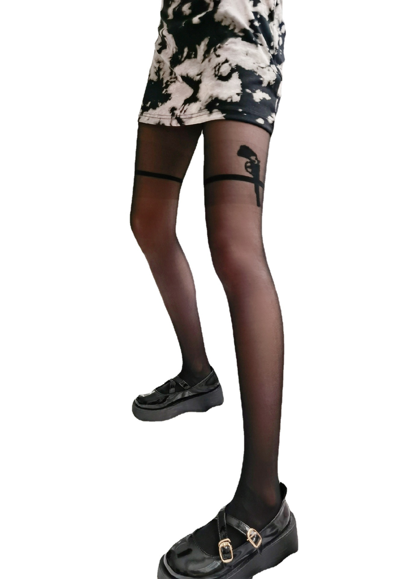 新品暗黑辣妹风黑丝系列春夏性感显瘦吊带手枪薄丝袜打底连裤袜女