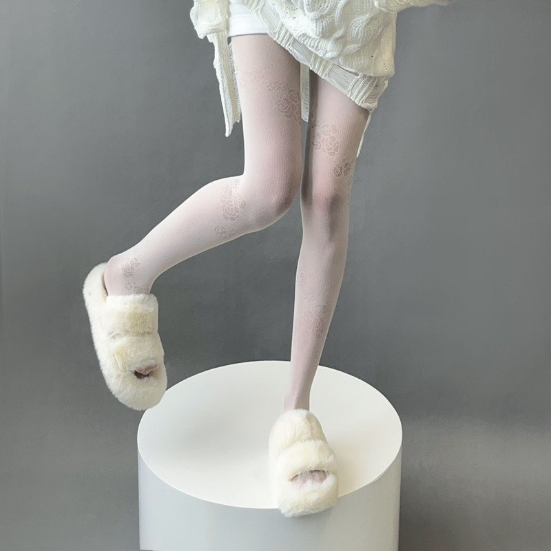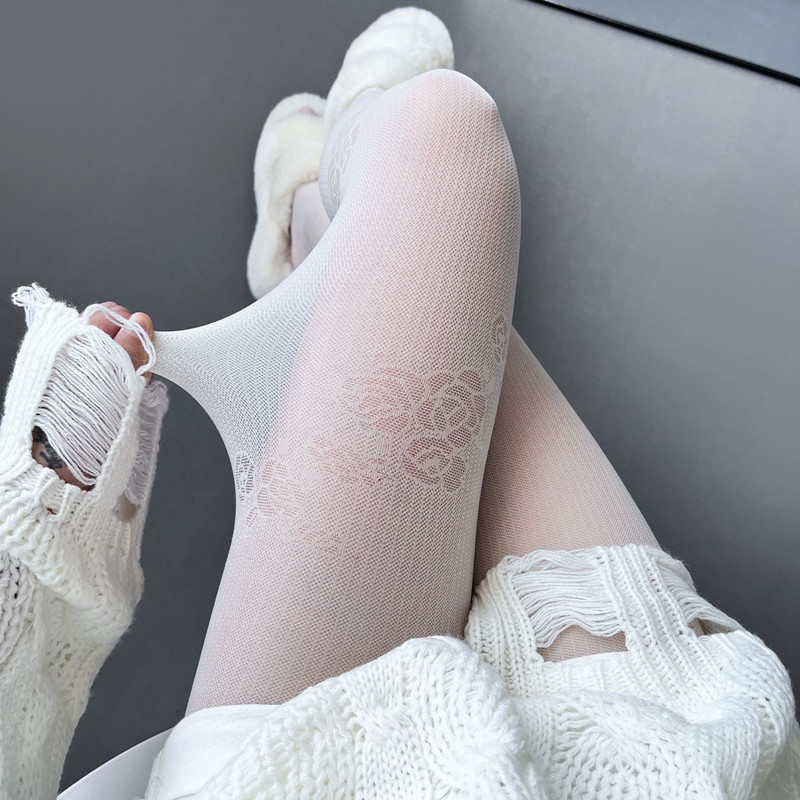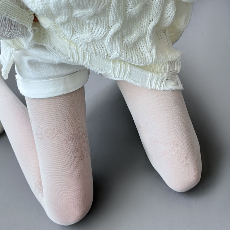 软妹少女白丝复古甜美仙女纯欲风斜纹花朵环绕连裤袜lolita少女丝