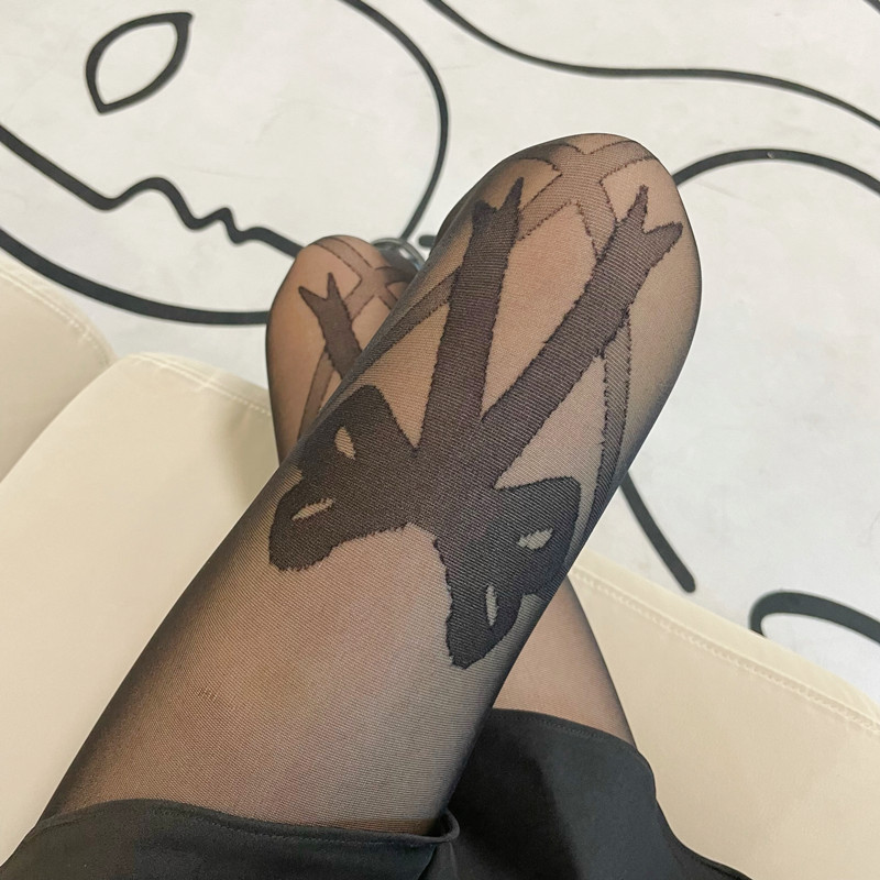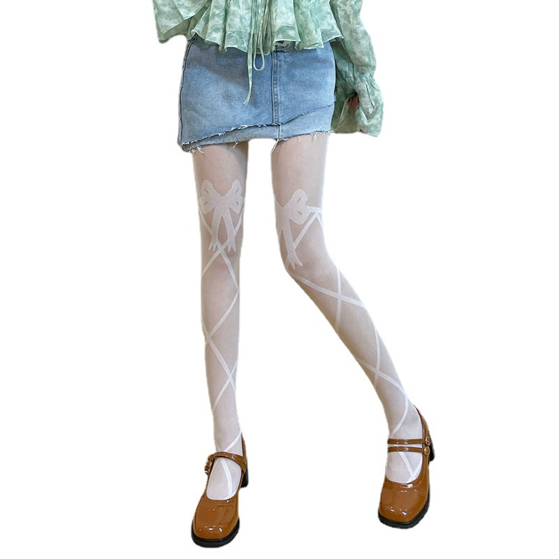 lolita甜美蝴蝶结交叉绑带黑白色丝袜洛丽塔美腿透明超薄连裤袜女