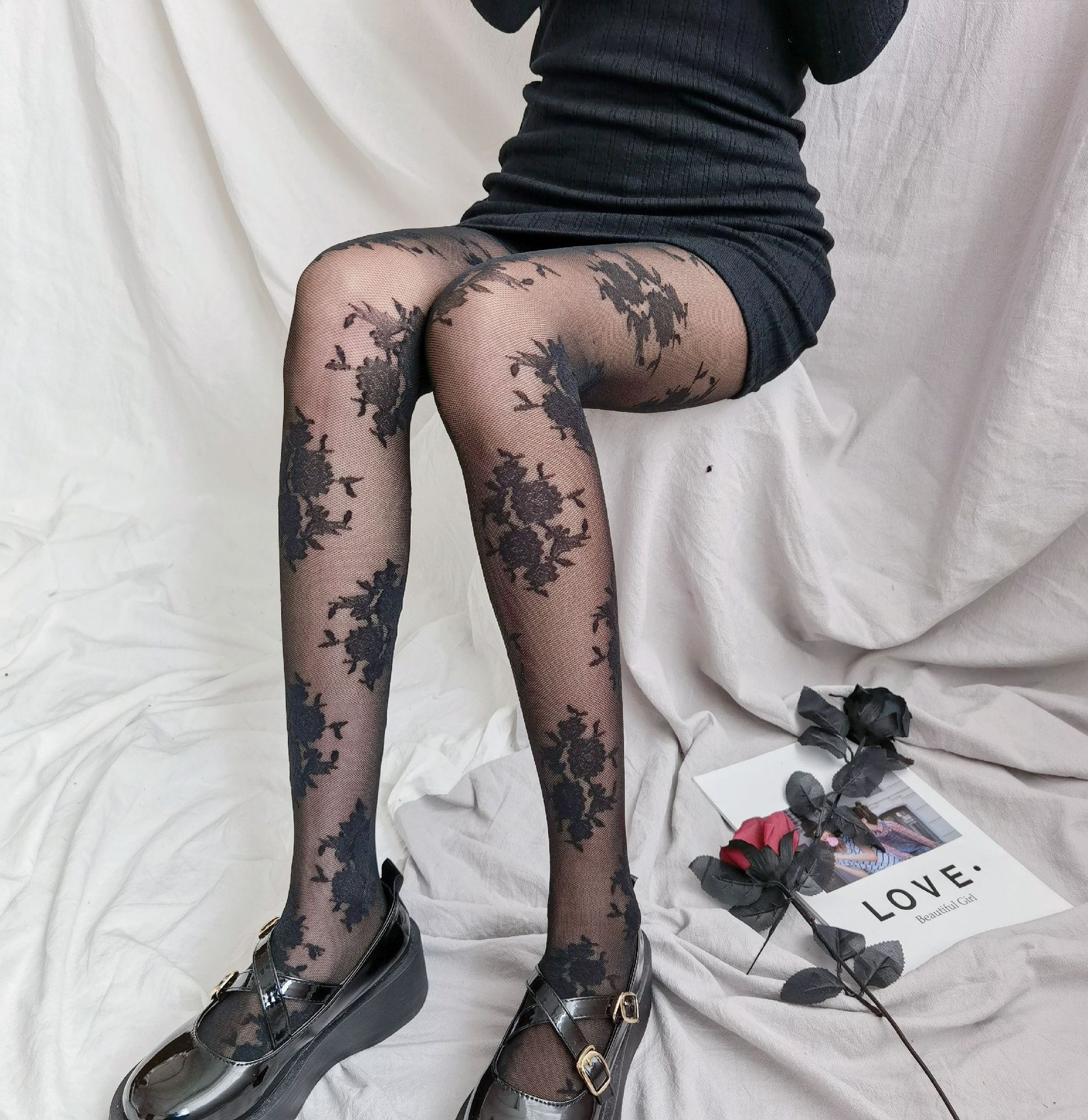 夏季法式玫瑰花朵丝袜复古奶白蕾丝袜子白色提花辣妹显瘦连裤袜
