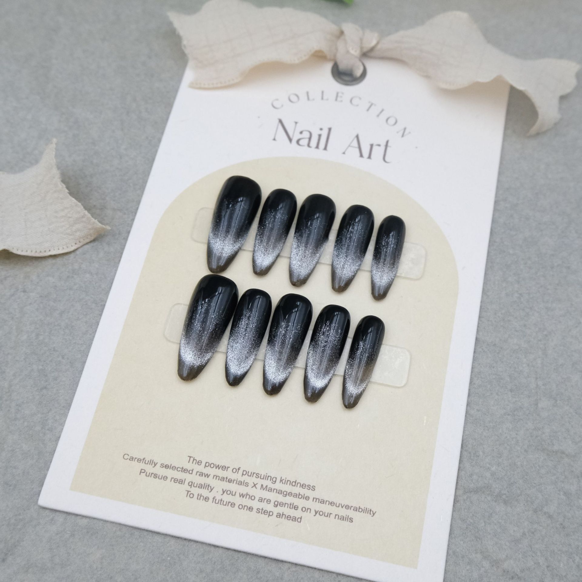 纯手工美甲穿戴甲假指甲贴片甜酷女孩y2k辣妹银色猫眼法式水滴甲