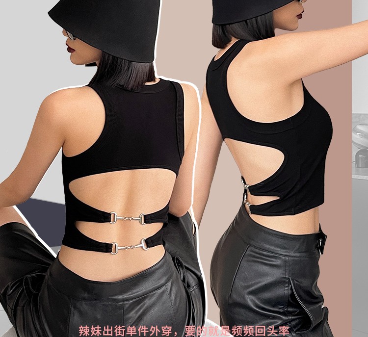 辣妹螺纹棉背心式运动性感镂空后背固定杯修身内搭外穿露背裹胸潮