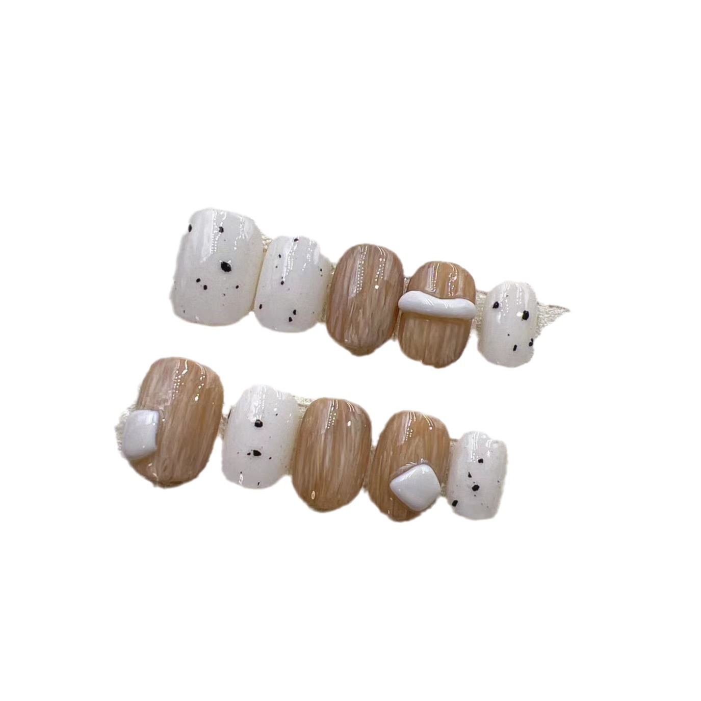 实拍穿戴甲手工美甲成品假指甲贴片可爱捏捏胶奶油巧克力短甲