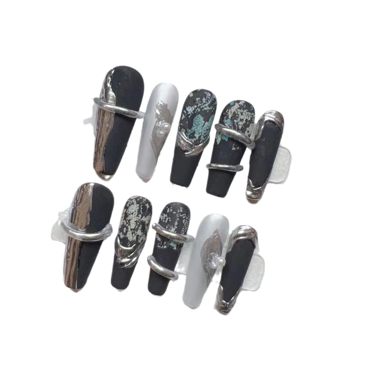 纯手工美甲穿戴甲假指甲贴片小众高级魔镜国风缠绕龙纹法式磨砂