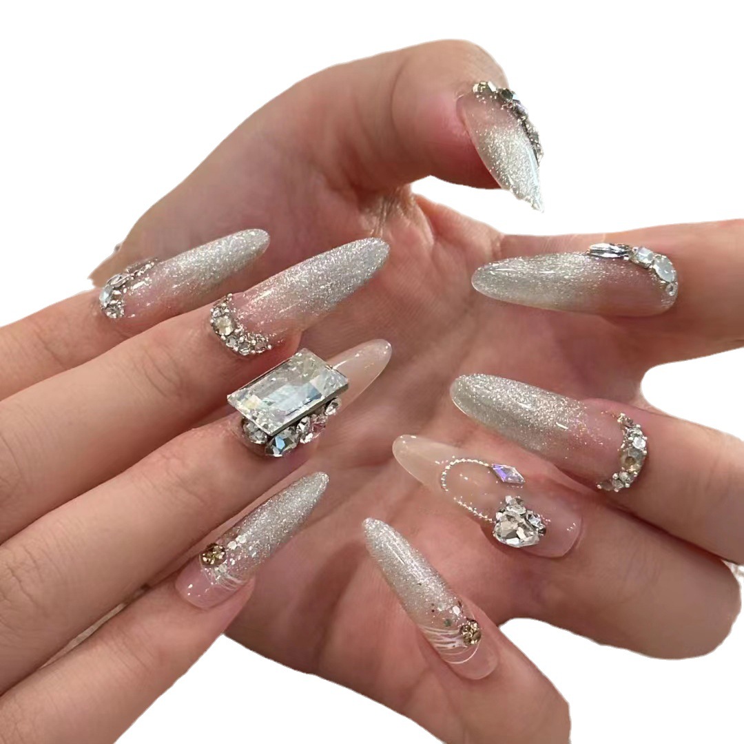 纯手工美甲穿戴甲假指甲贴片纯欲法式猫眼渐变轻奢爆闪大方钻水滴