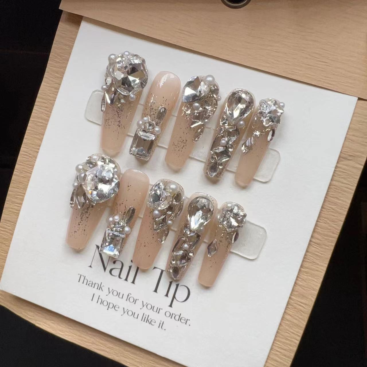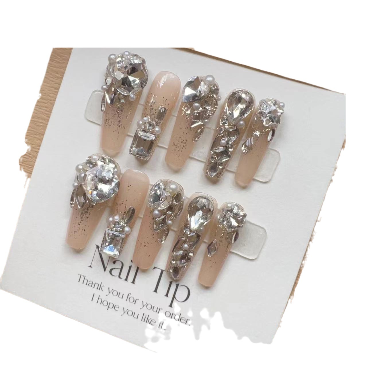 纯手工美甲穿戴甲假指甲贴片高工奢华名媛爆闪钻冰透裸色秋冬新款