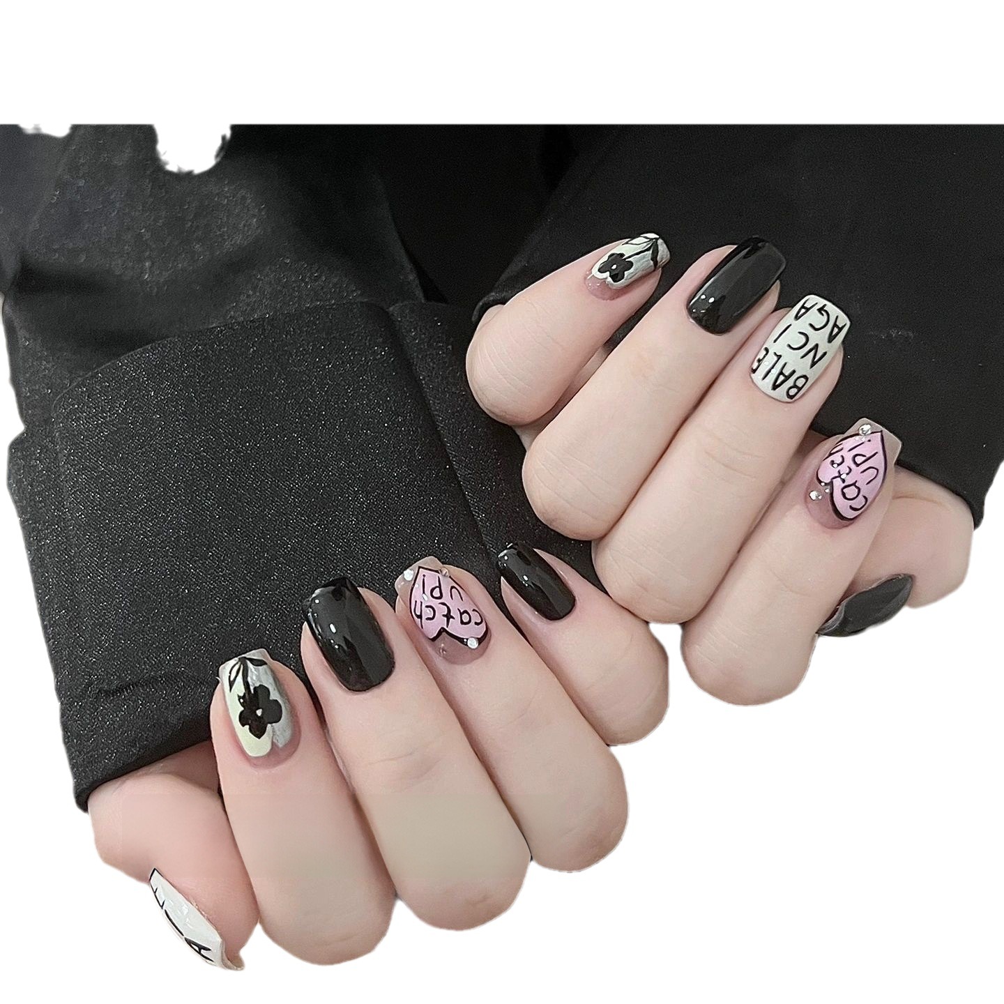 纯手工美甲穿戴甲假指甲贴片美甲成品甜酷辣妹风高级字母爱心爆款