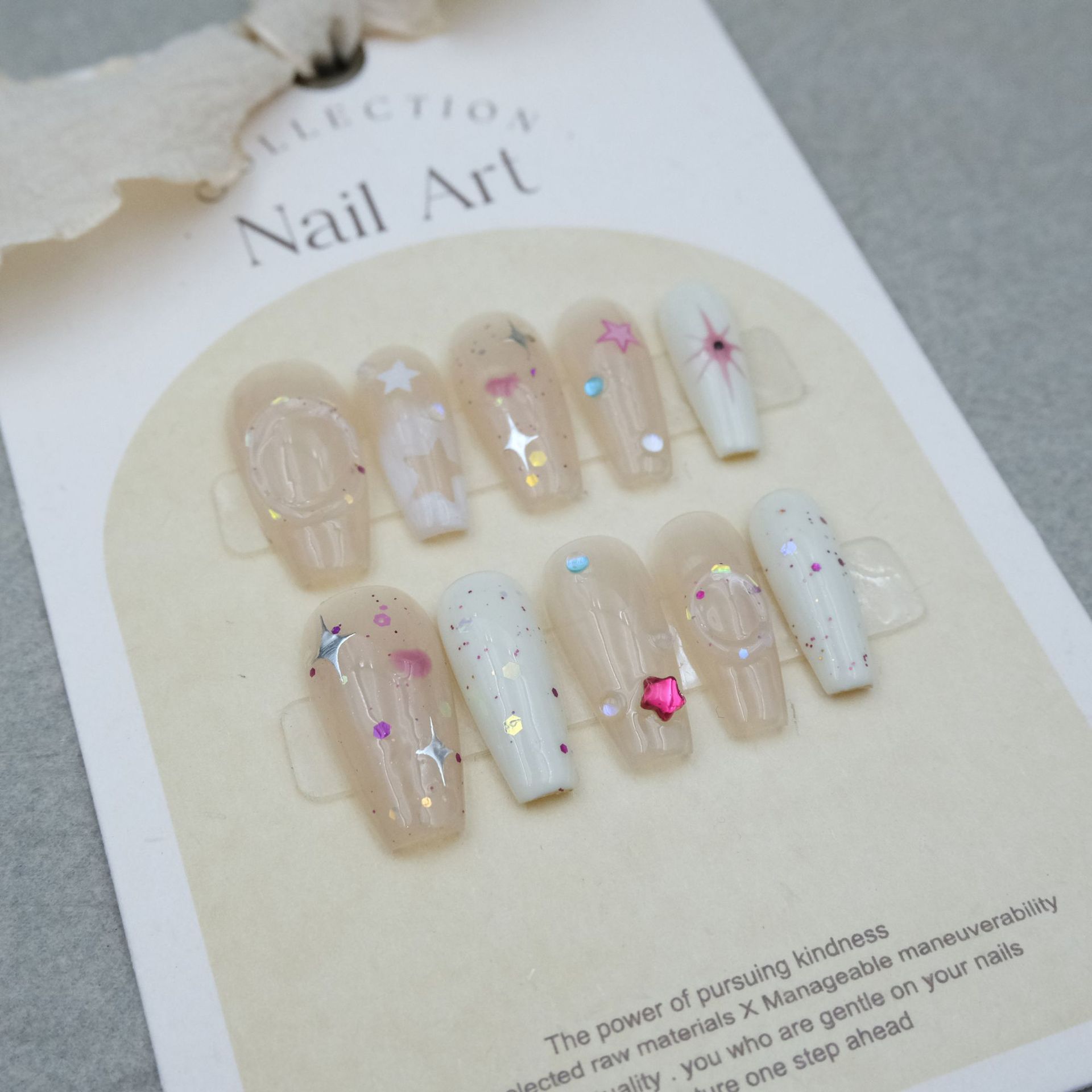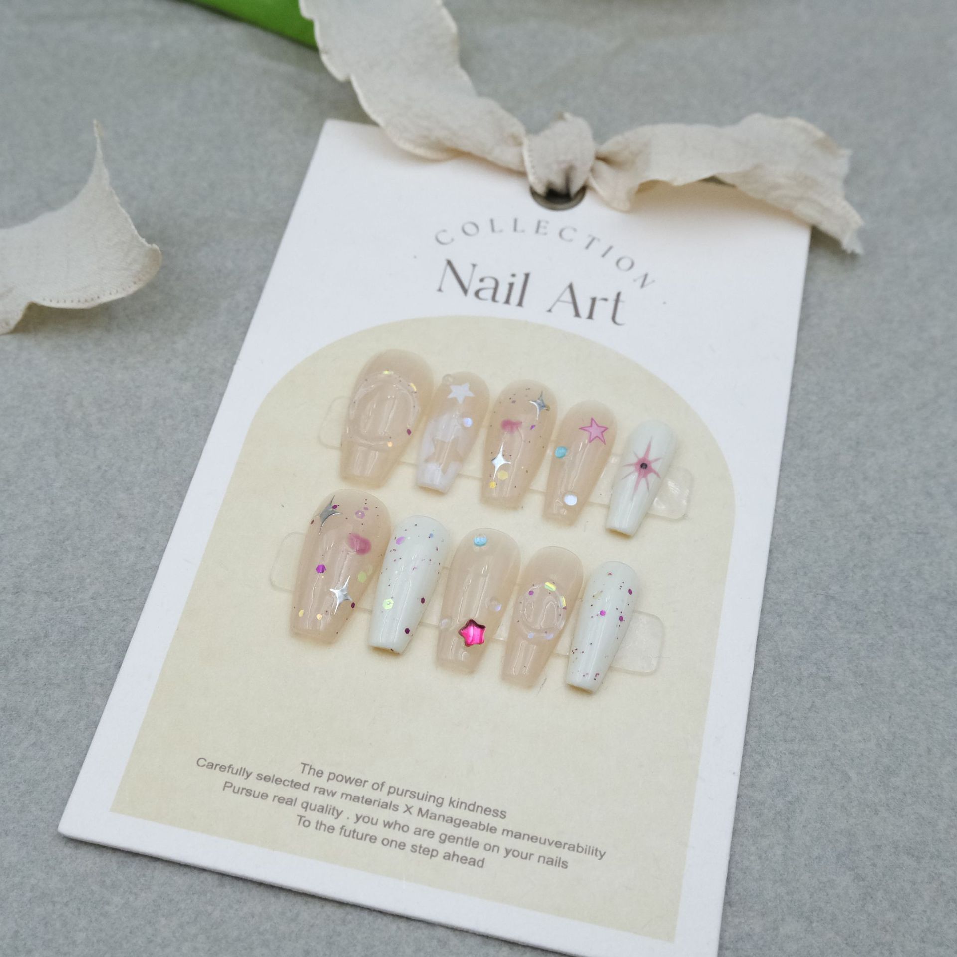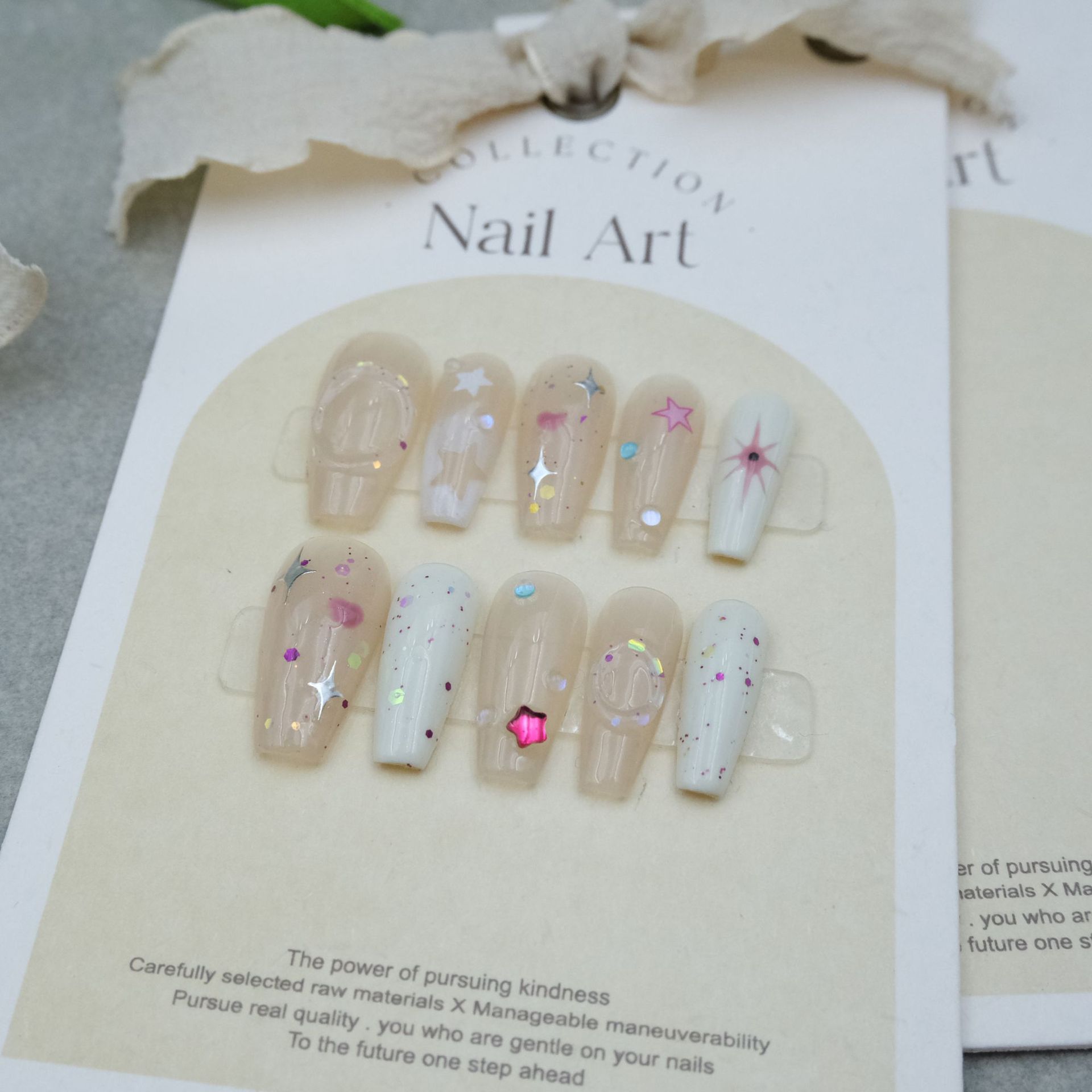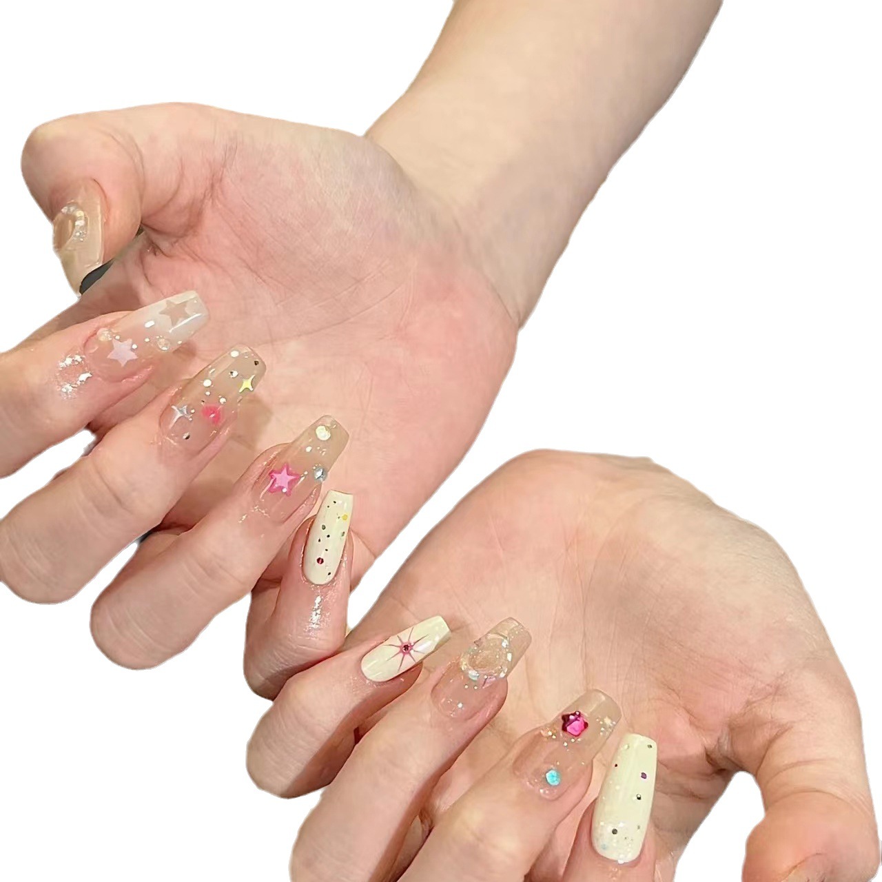 手工美甲穿戴甲假指甲贴片在逃公主辣妹美甲手绘纯欲裸色波点爱心