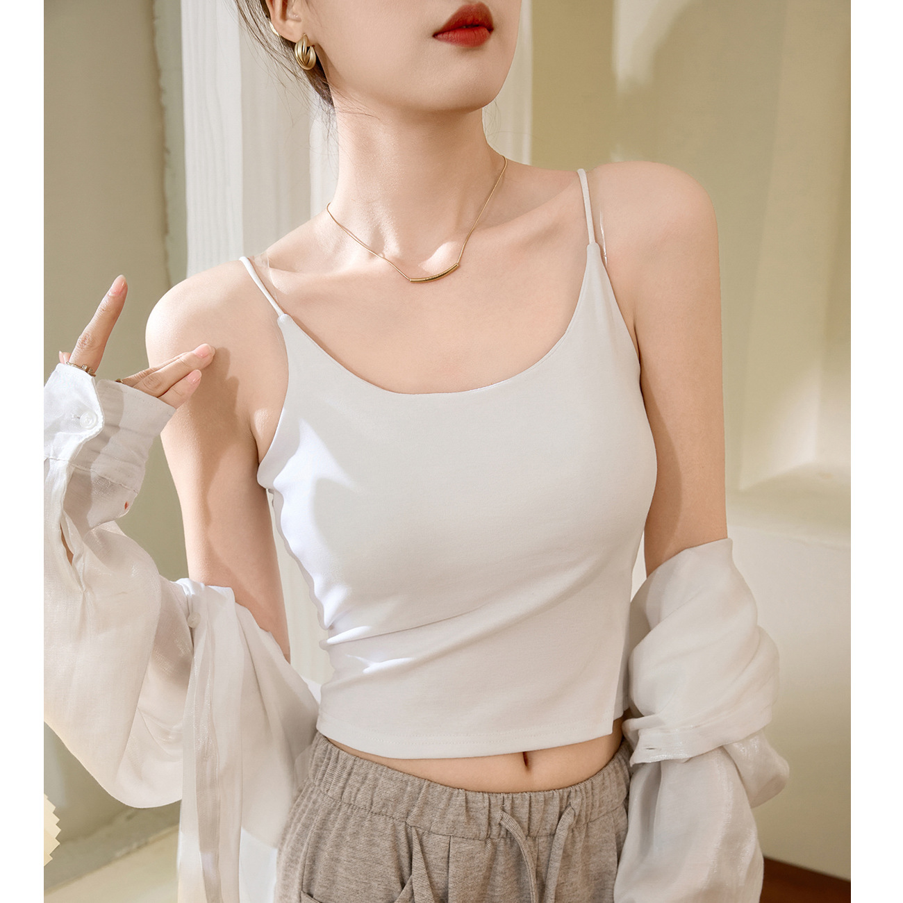 文胸一体吊带背心女夏纯棉带胸垫新款内搭聚拢加厚显胸大外穿