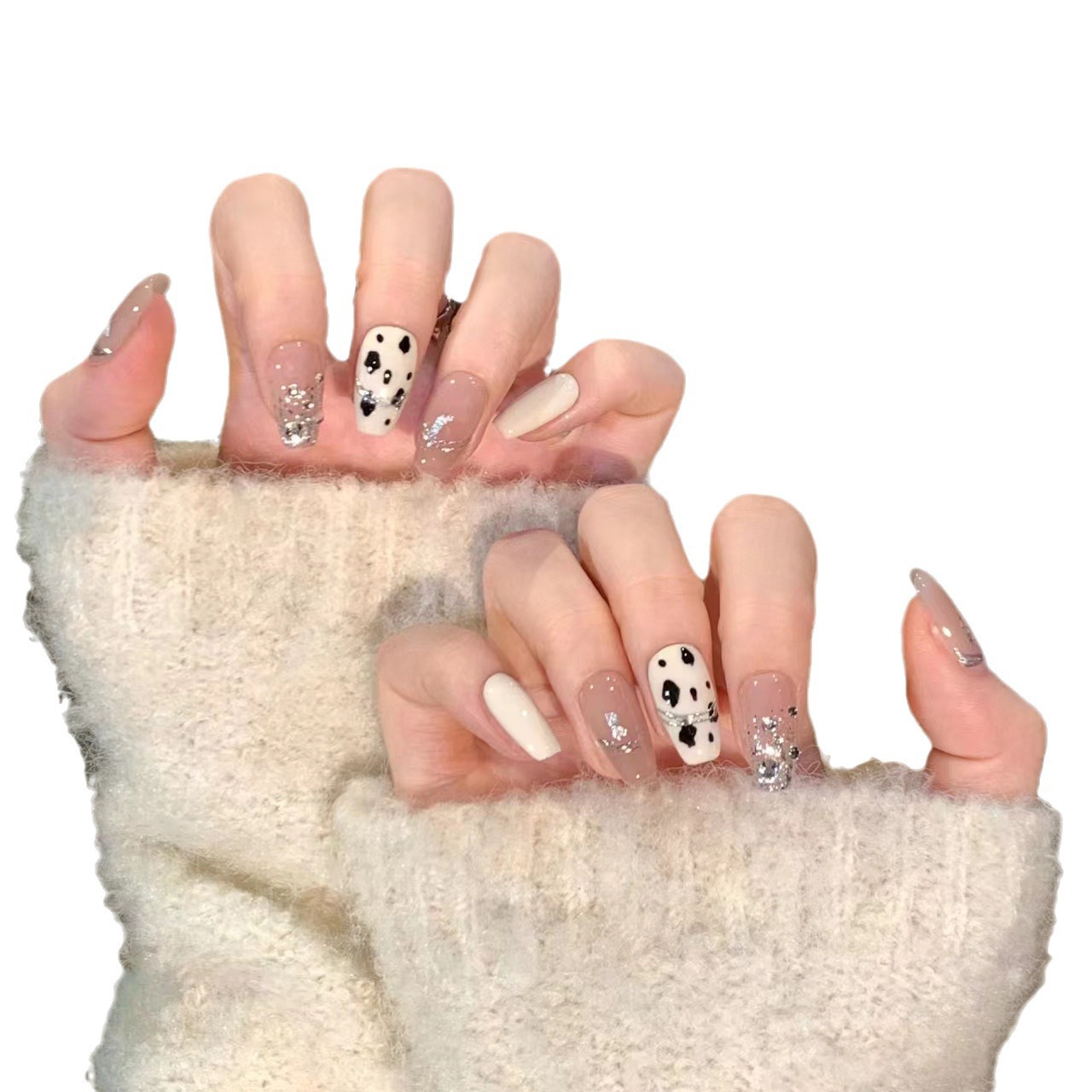 穿戴甲纯手工美甲成品假指甲贴片裸色魔镜奶牛豹纹亮片渐变爆闪钻