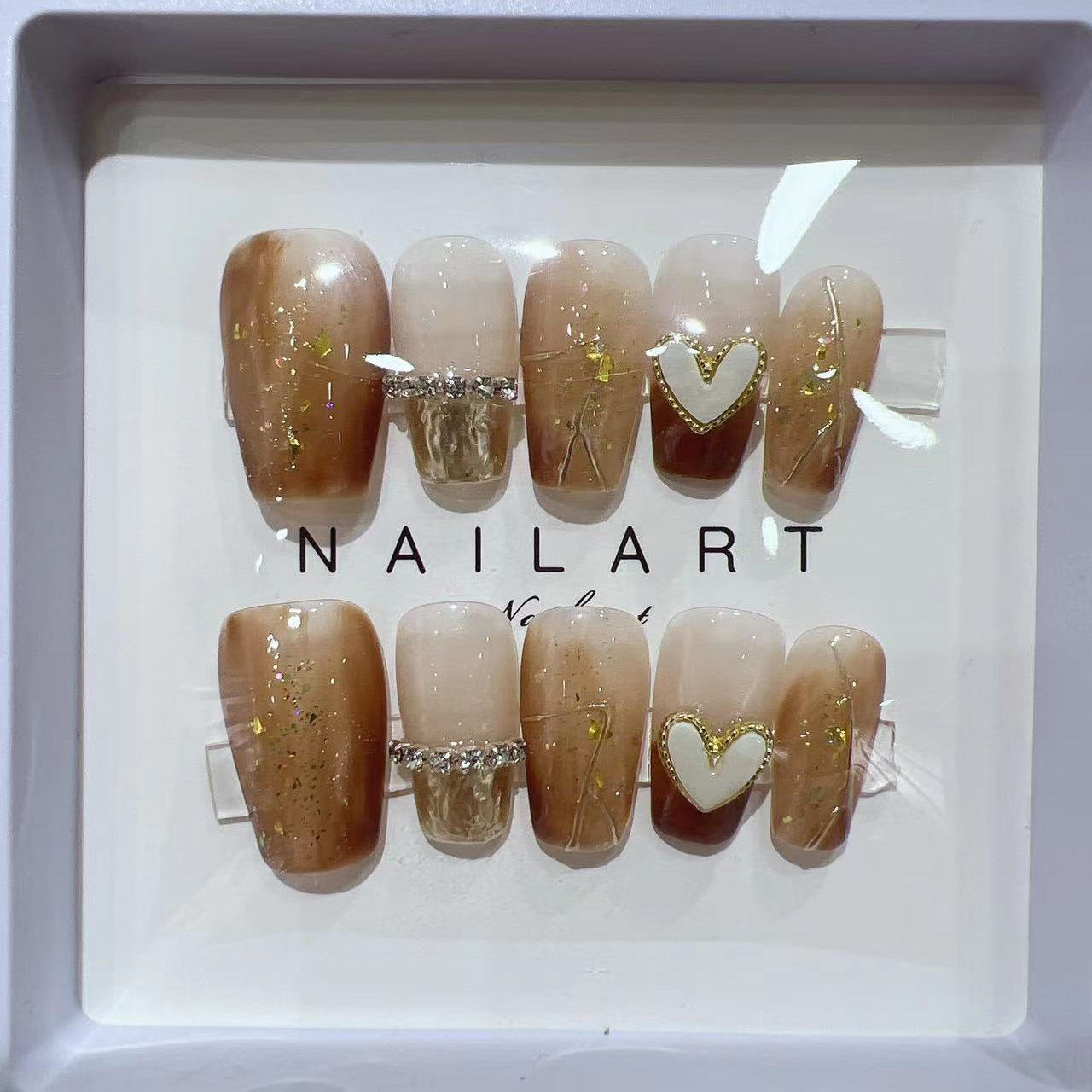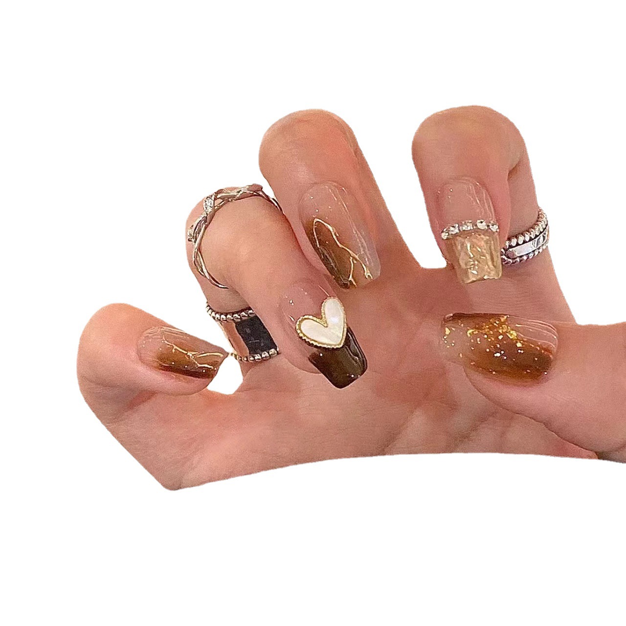 手工美甲穿戴甲假指甲贴片美甲成品高级秋冬显白晕染爱心可拆卸