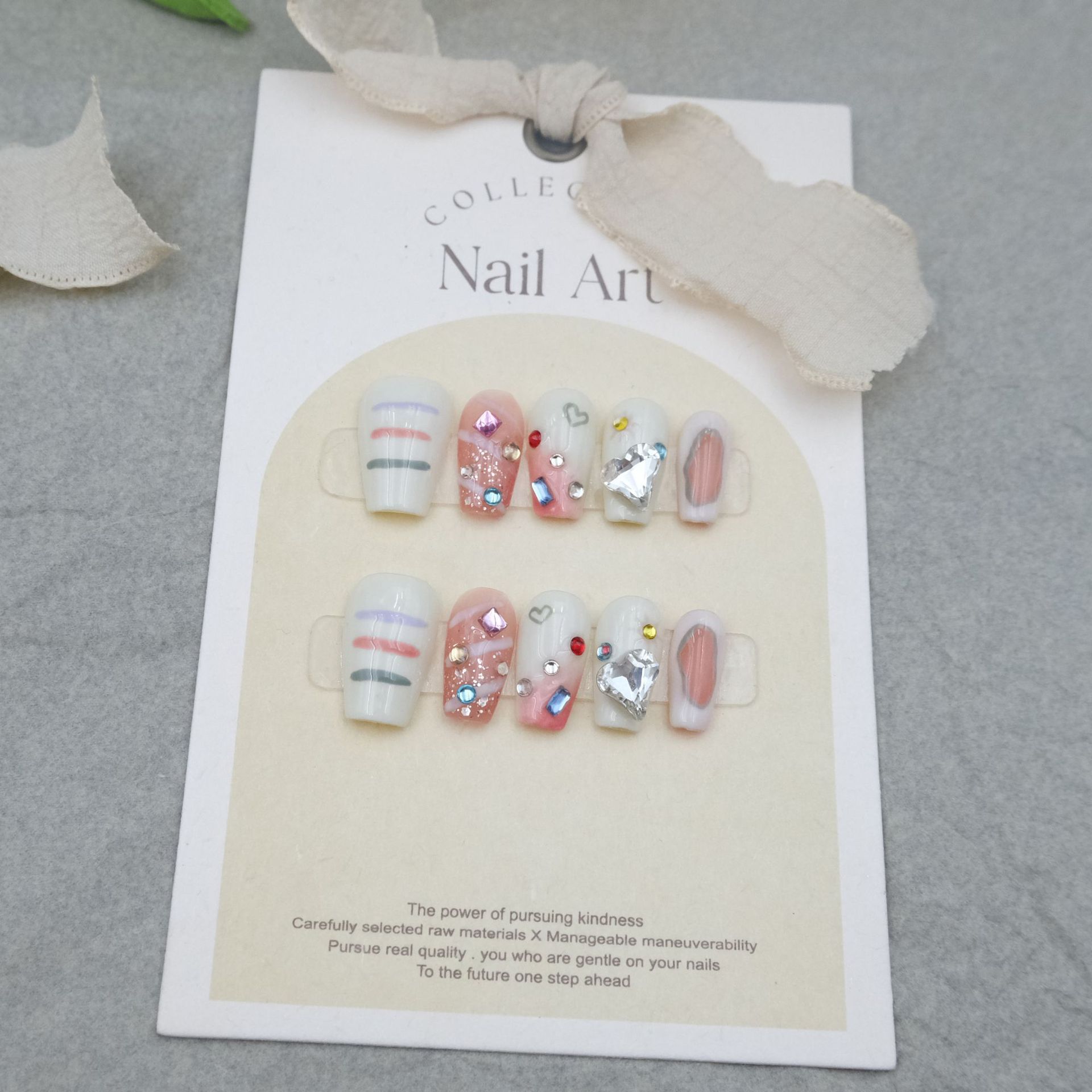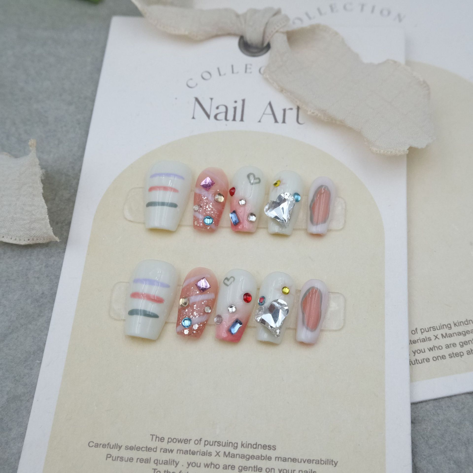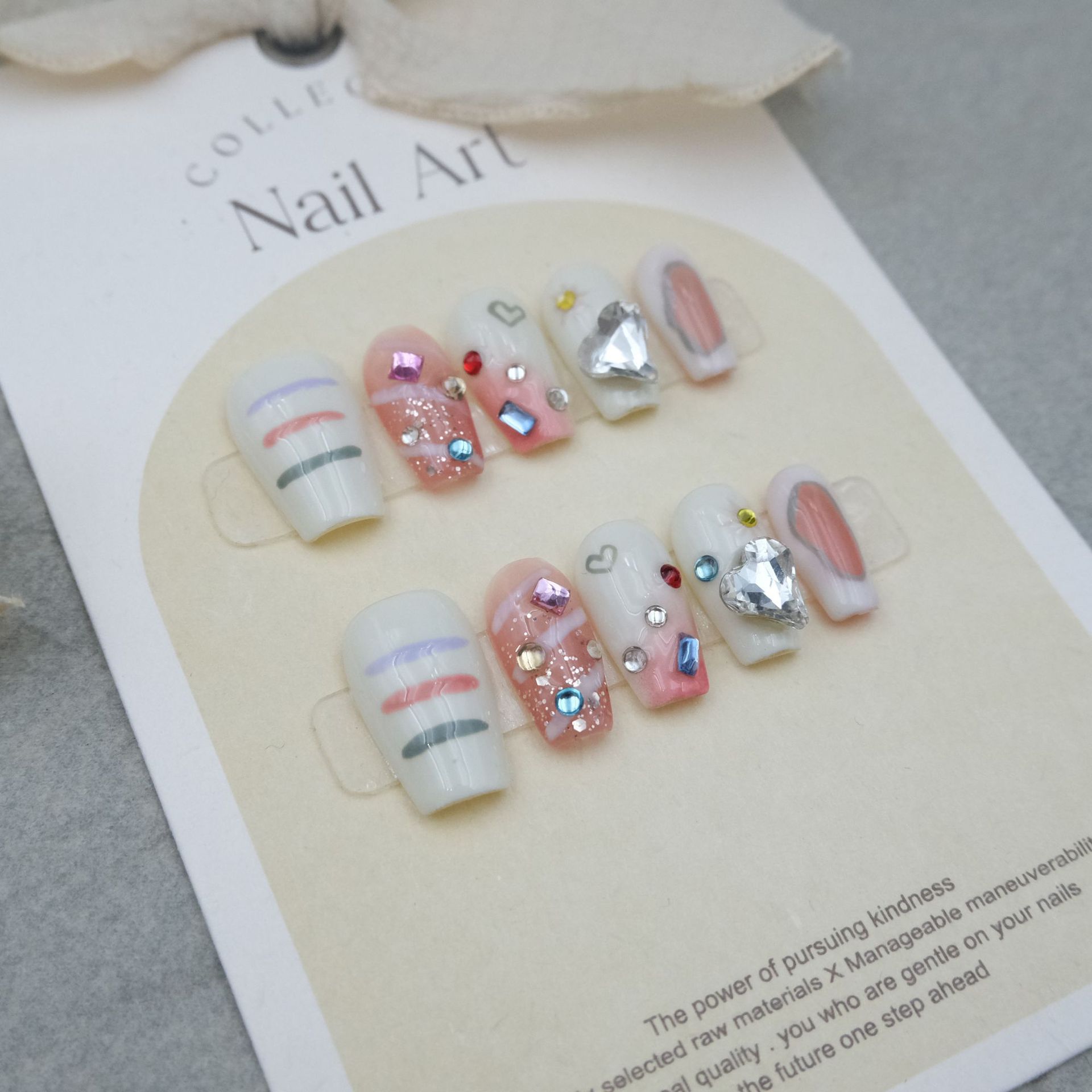手工美甲穿戴甲新款巴洛克风甜妹y2k可爱涂鸦活力晕染爆闪钻爱心