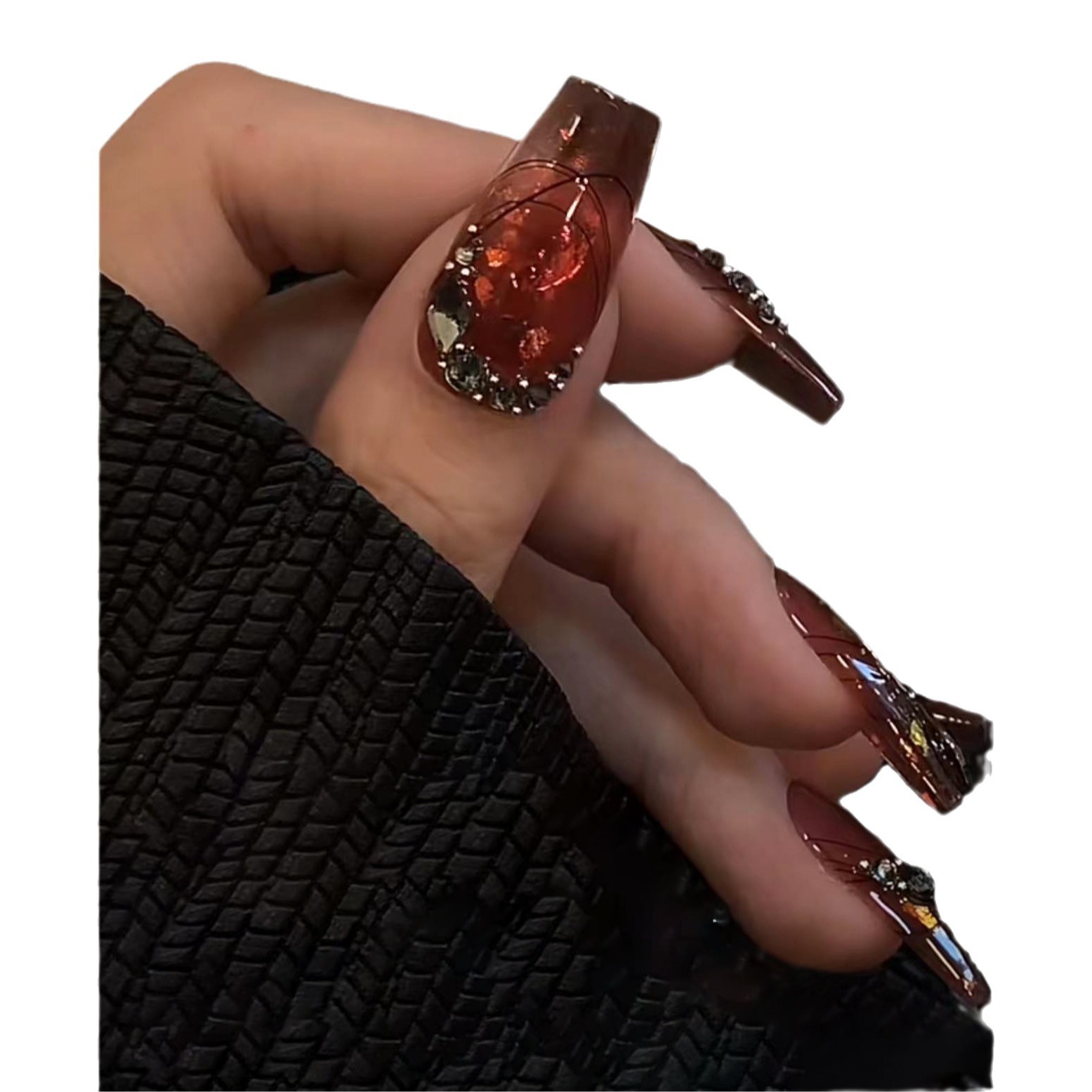 实纯拍手工穿戴甲手作甲片纯欲炫彩琉璃法式钻黑色拉线爆闪异形钻