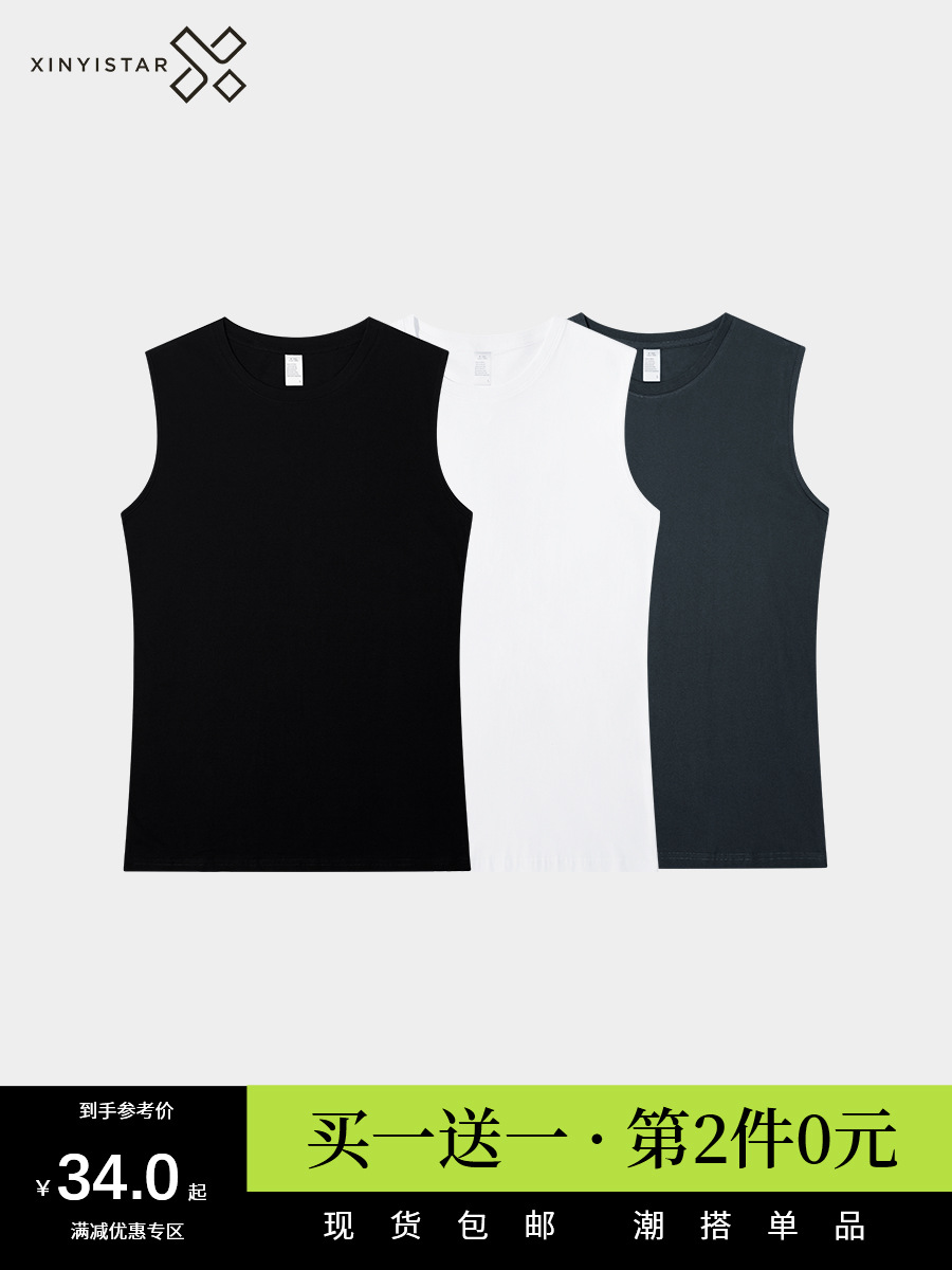 XYX 夏季纯棉运动健身背心T恤男阿美咔叽宽松无袖休闲坎肩体恤衫