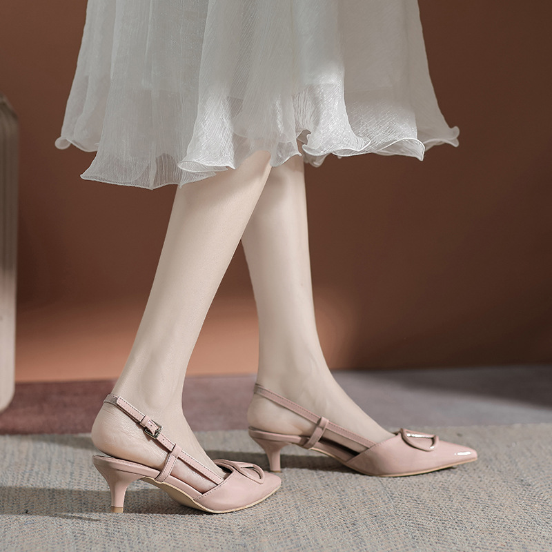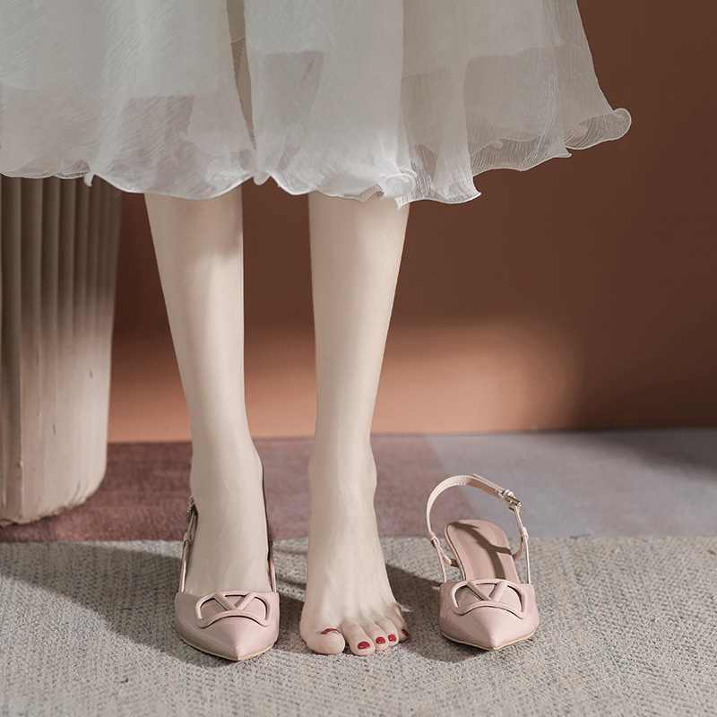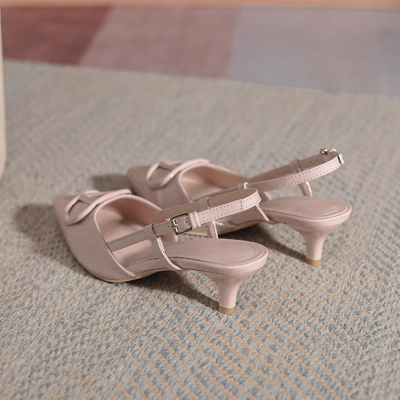 新款法式夏季尖头单鞋后空细跟高跟凉鞋女5cm英伦女鞋
