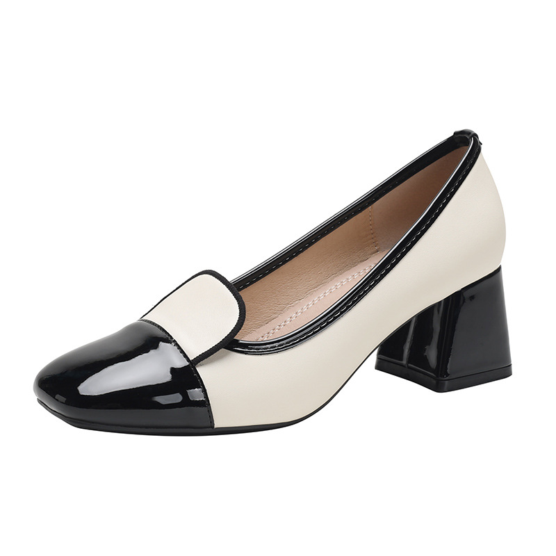年新款粗跟浅口单鞋职业通勤工作鞋休闲拼色逛街上班女鞋