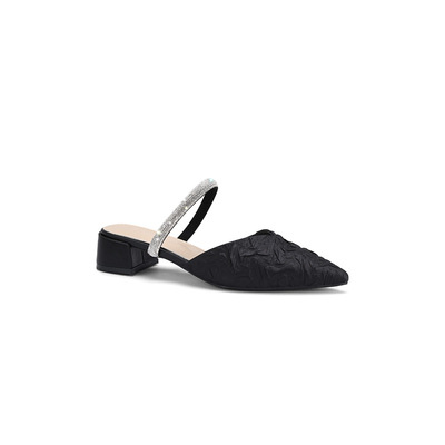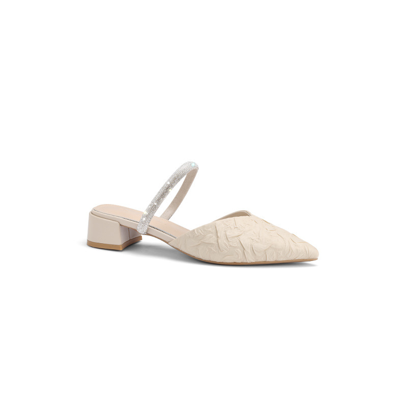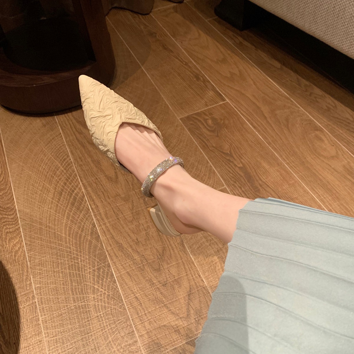 夏季温柔风一字钻带尖头后空粗跟凉拖鞋女高跟单鞋