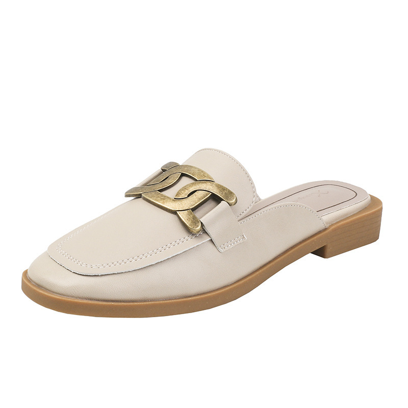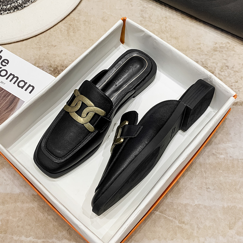 新款真皮包头半拖鞋女夏平底百搭方头单鞋外穿时尚懒人穆勒鞋