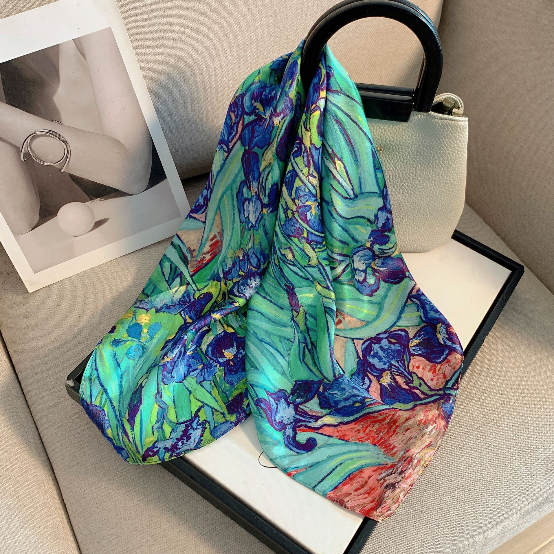 梵高的郁金香丝巾高档丝绸围巾女百搭真丝丝巾女薄款真丝披肩