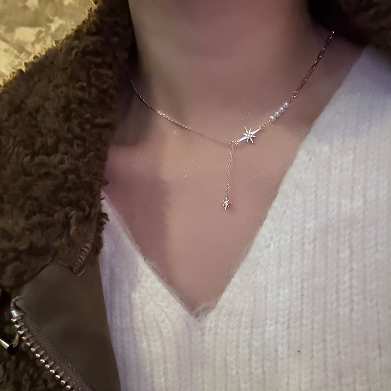 气质八芒星珍珠项链气质轻奢高级感短款颈链小众设计感锁骨链配饰