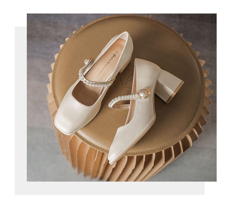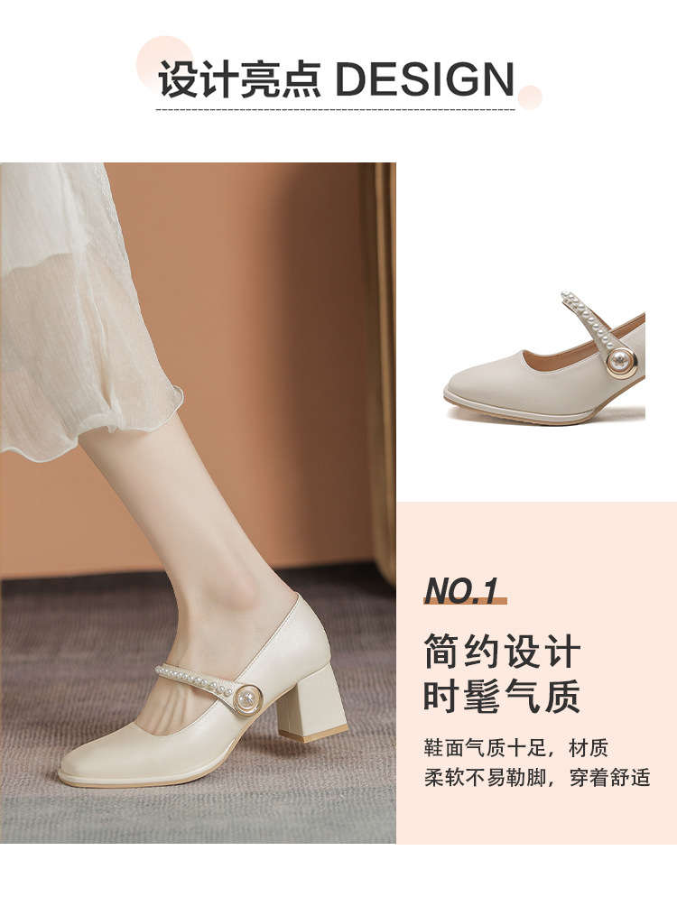 粗跟真皮仙女款浅口小皮鞋晚晚温柔风玛丽珍鞋漆皮高跟鞋单鞋