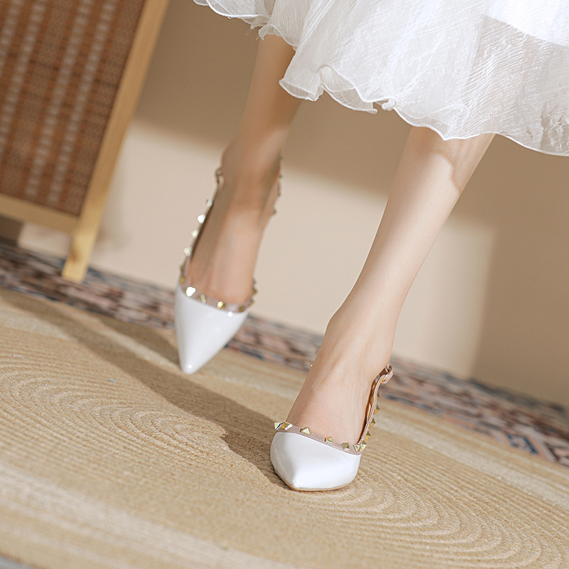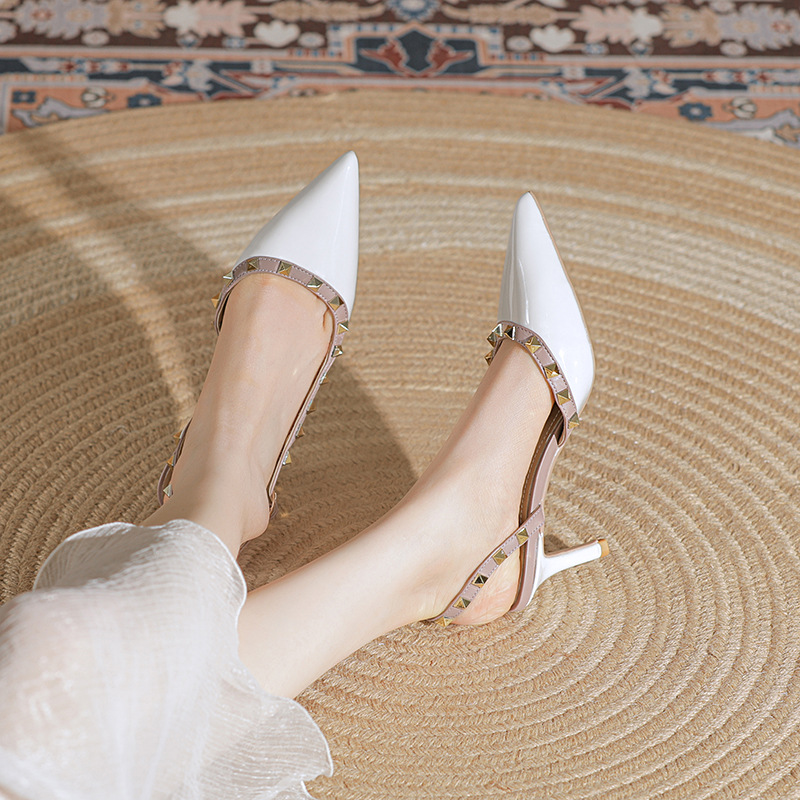 漆皮夏季新款包头铆钉尖头设计感小众气质铆钉高跟凉鞋女细跟