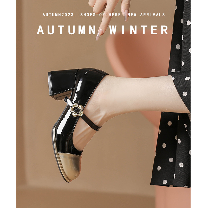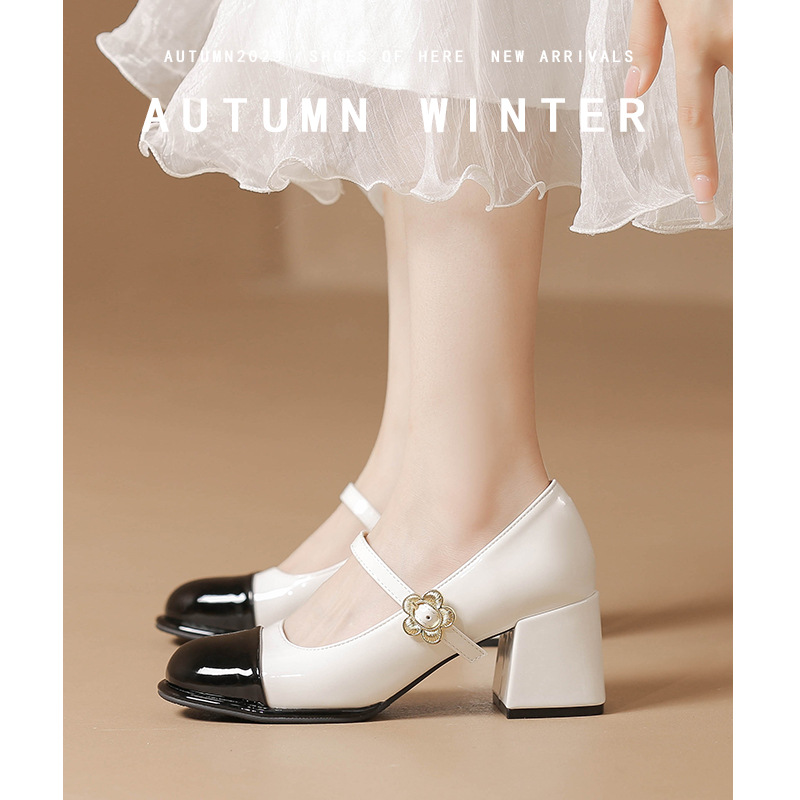 时尚百搭仙女风浅口玛丽珍鞋高跟鞋年夏秋季圆头粗跟单鞋中跟