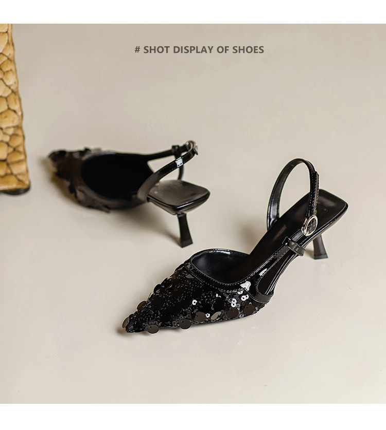 婚宴礼鞋尖头亮片包头后空夏季新款仙女气质高跟单鞋复古
