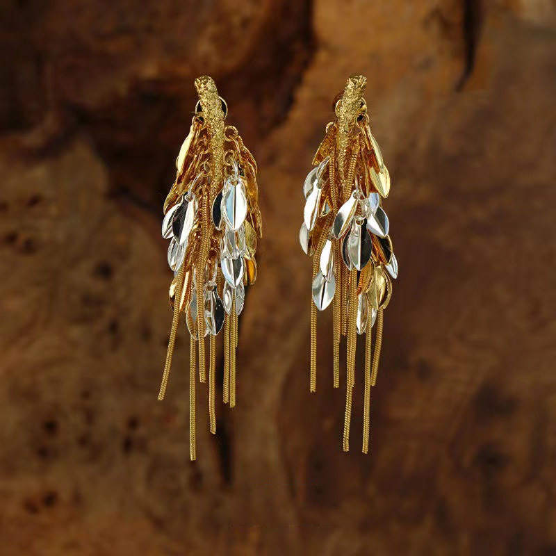麦穗流苏双色耳环复古轻奢时尚耳钉个性高级感复古耳饰欧美耳饰品