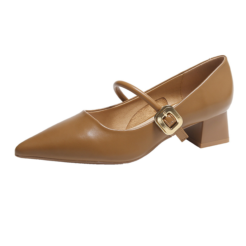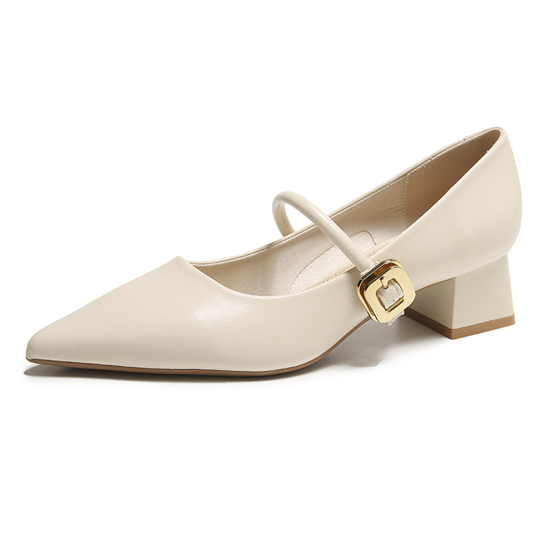 复古法式单鞋女新款百搭尖头中跟玛丽珍女鞋粗跟夏季高跟鞋